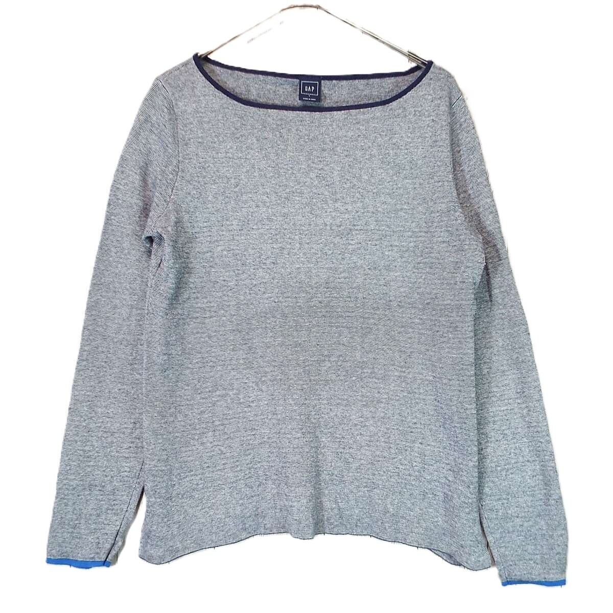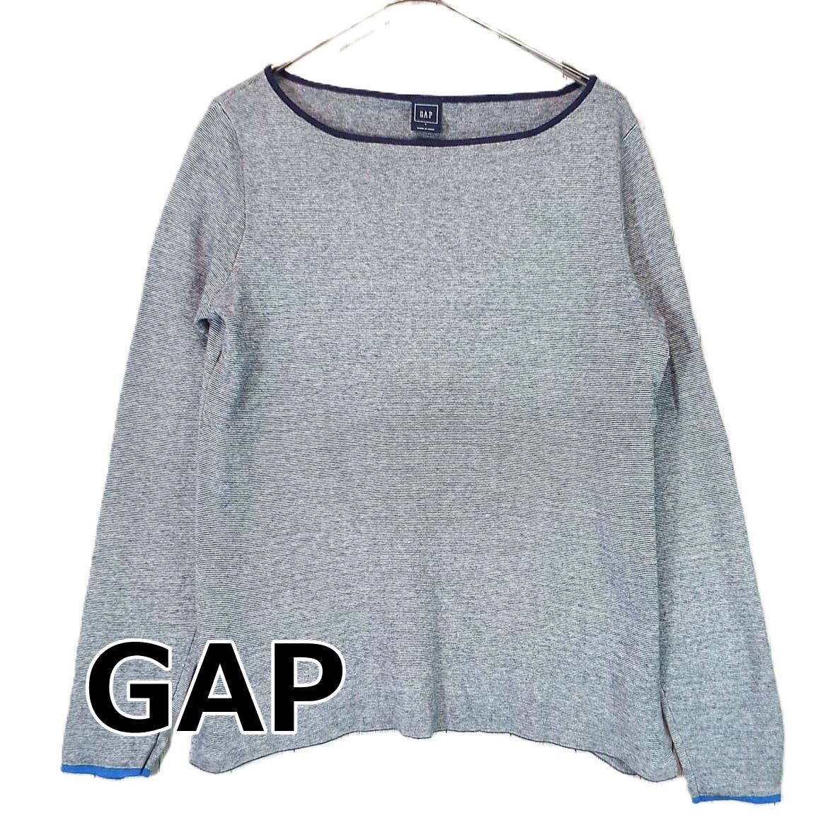 【アメリカ古着】【肩幅40cm】GAP ギャップ ボーダー柄 ボートネック 長袖シャツ Lサイズ グレー・ネイビー コットン・レーヨン・リネン混紡【湘南倉庫】レディース古着
