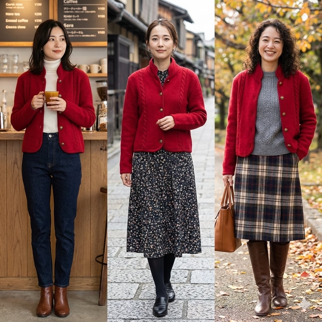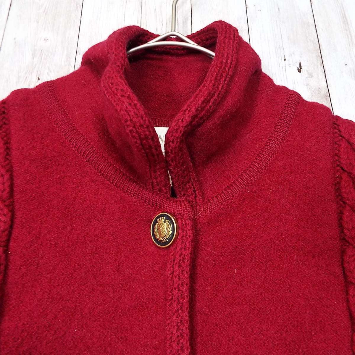 ・王冠ボタンに、ケーブル編みのデザインも素敵な1着です。