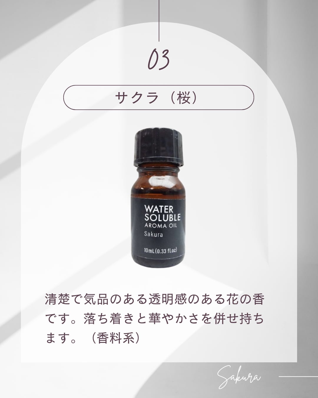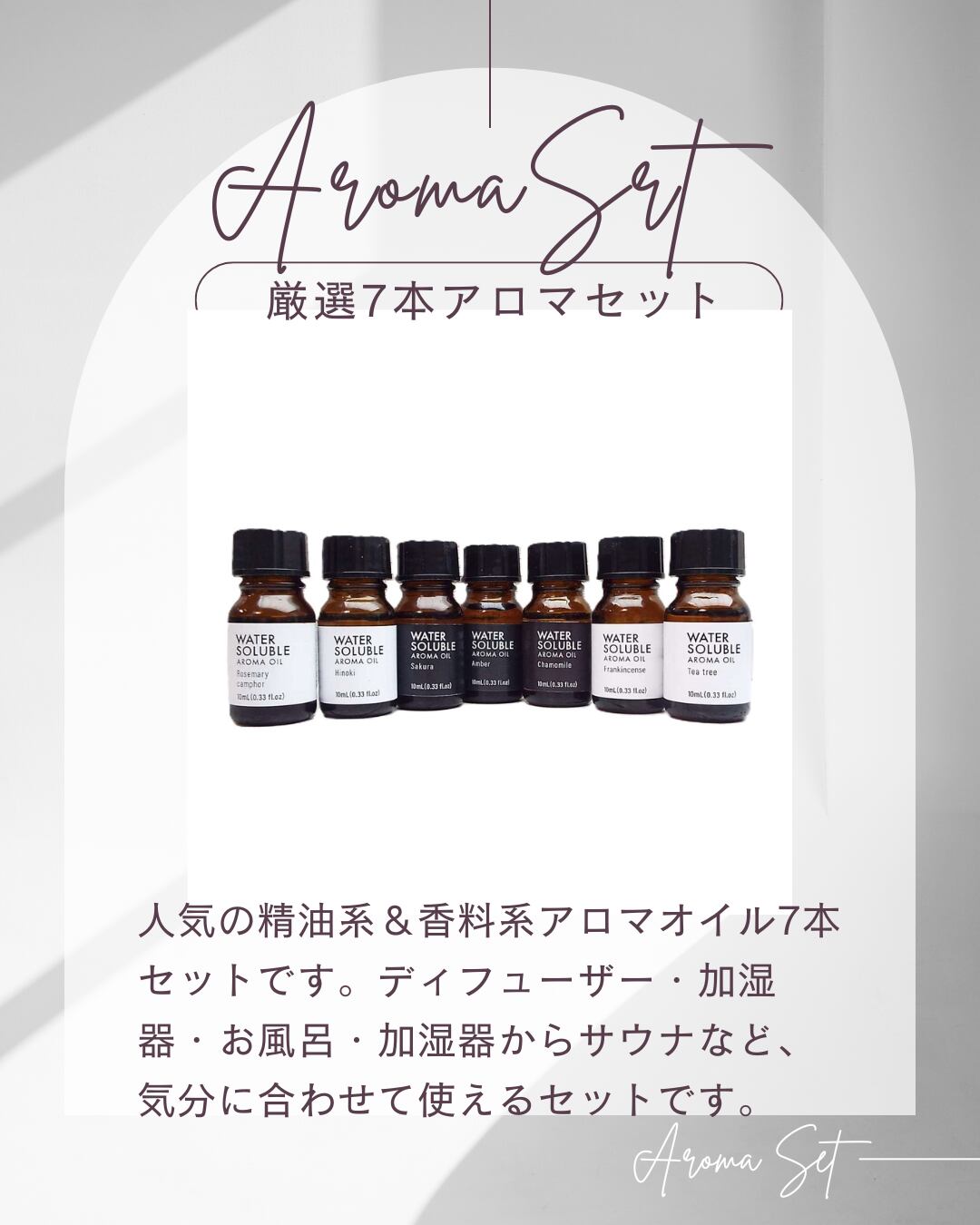 ・香り:アンバー・カモミール・サクラ・ティーツリー・ひのき・フランキンセンス・ローズマリーカンファー(7種類セット)