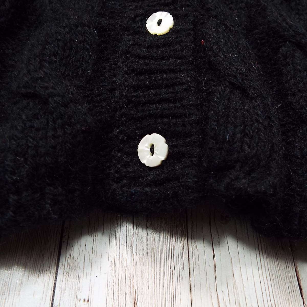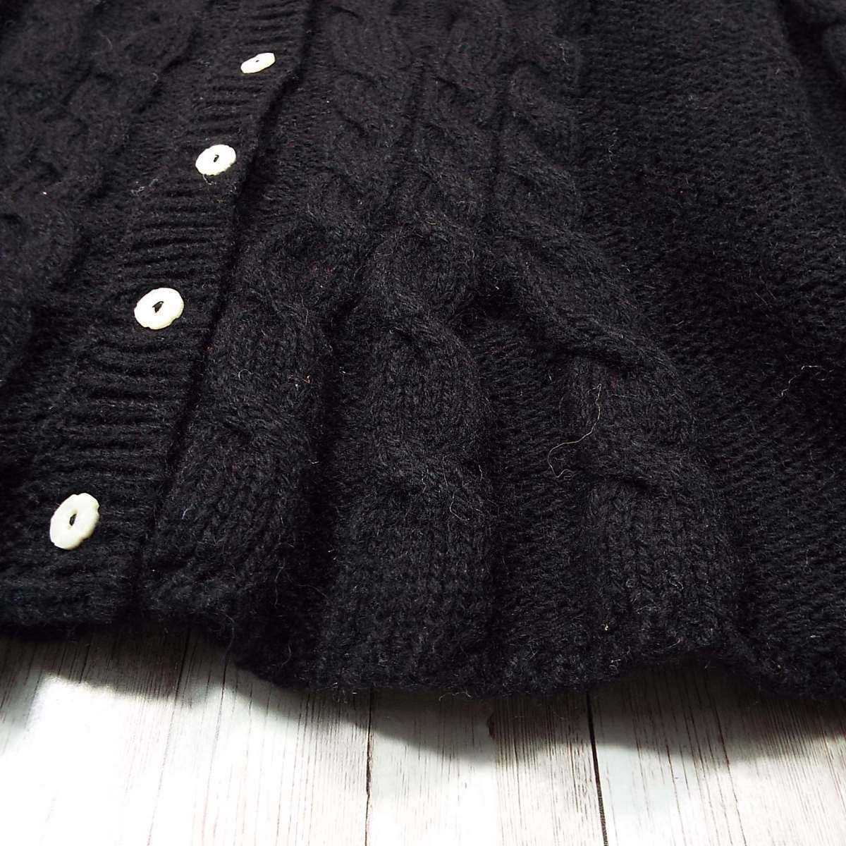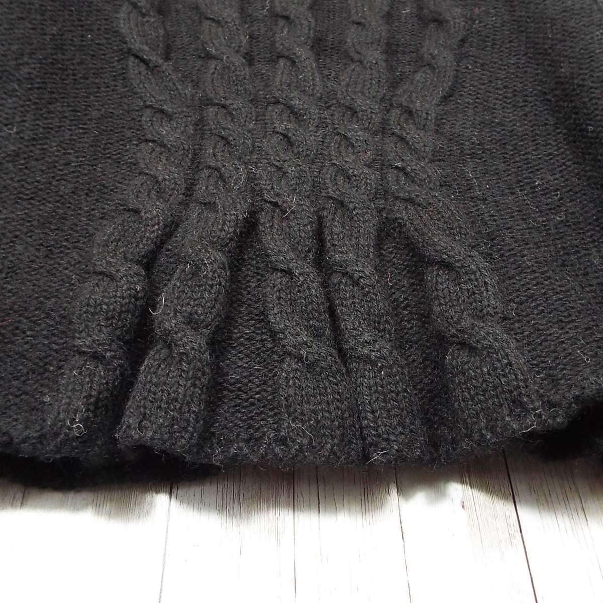 ・凹凸感のあるケーブル編み。後ろ裾はプリーツになっていて、ヒップ周りも綺麗に隠してくれます。