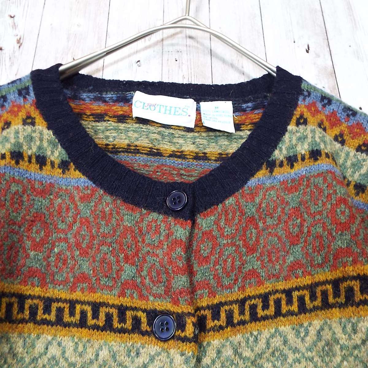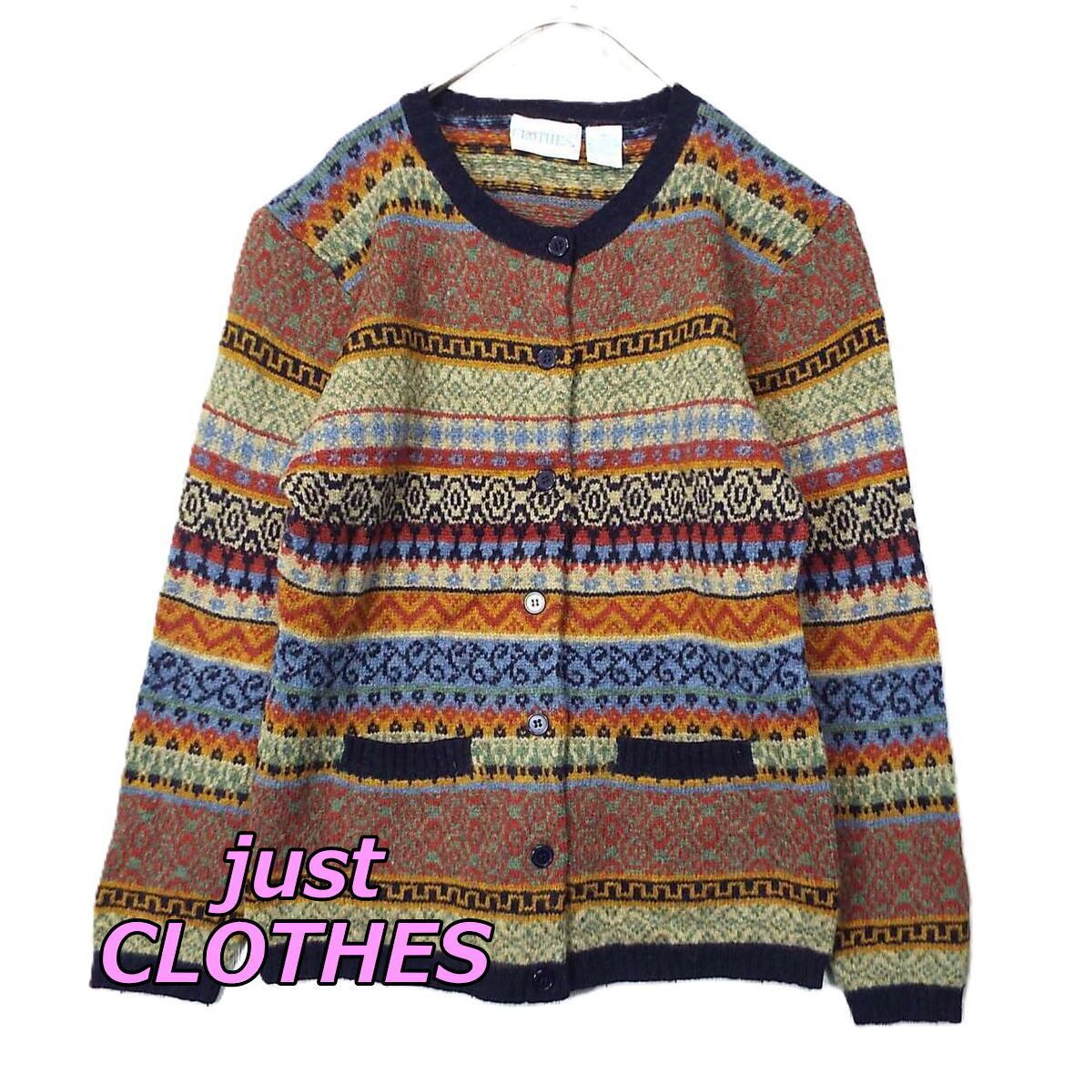 【アメリカ古着】【1990年代ヴィンテージ】90's 香港製 Just CLOTHES ジャストクローズ ボタン留め フェアアイル柄 長袖ニットセーター Mサイズ(肩幅42cm)ラムウール100%【湘南倉庫】レディースブランド古着 トラッドスタイル