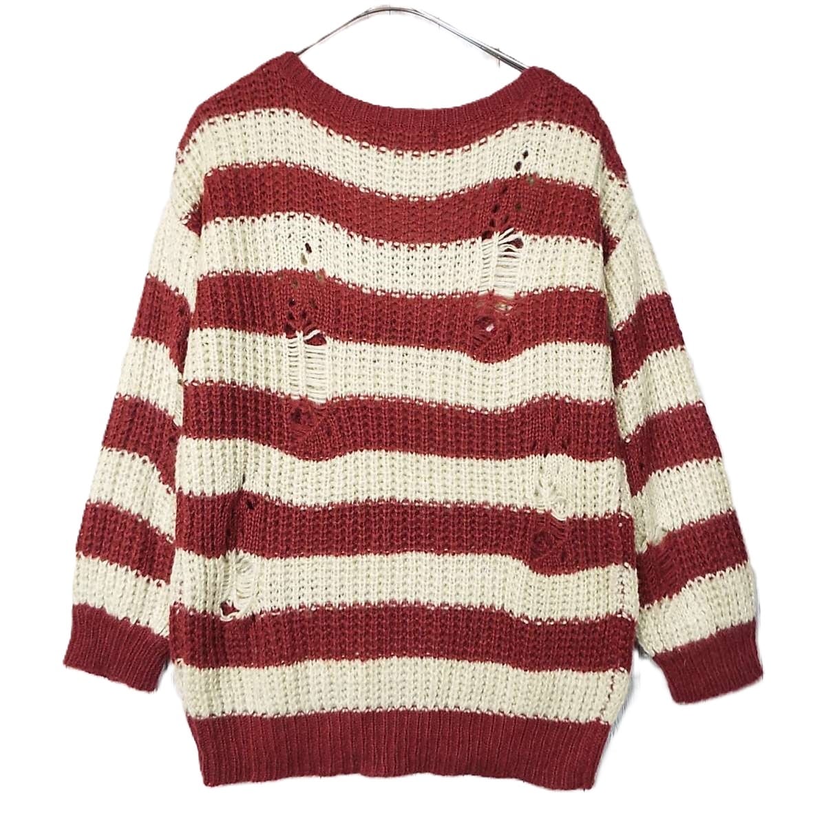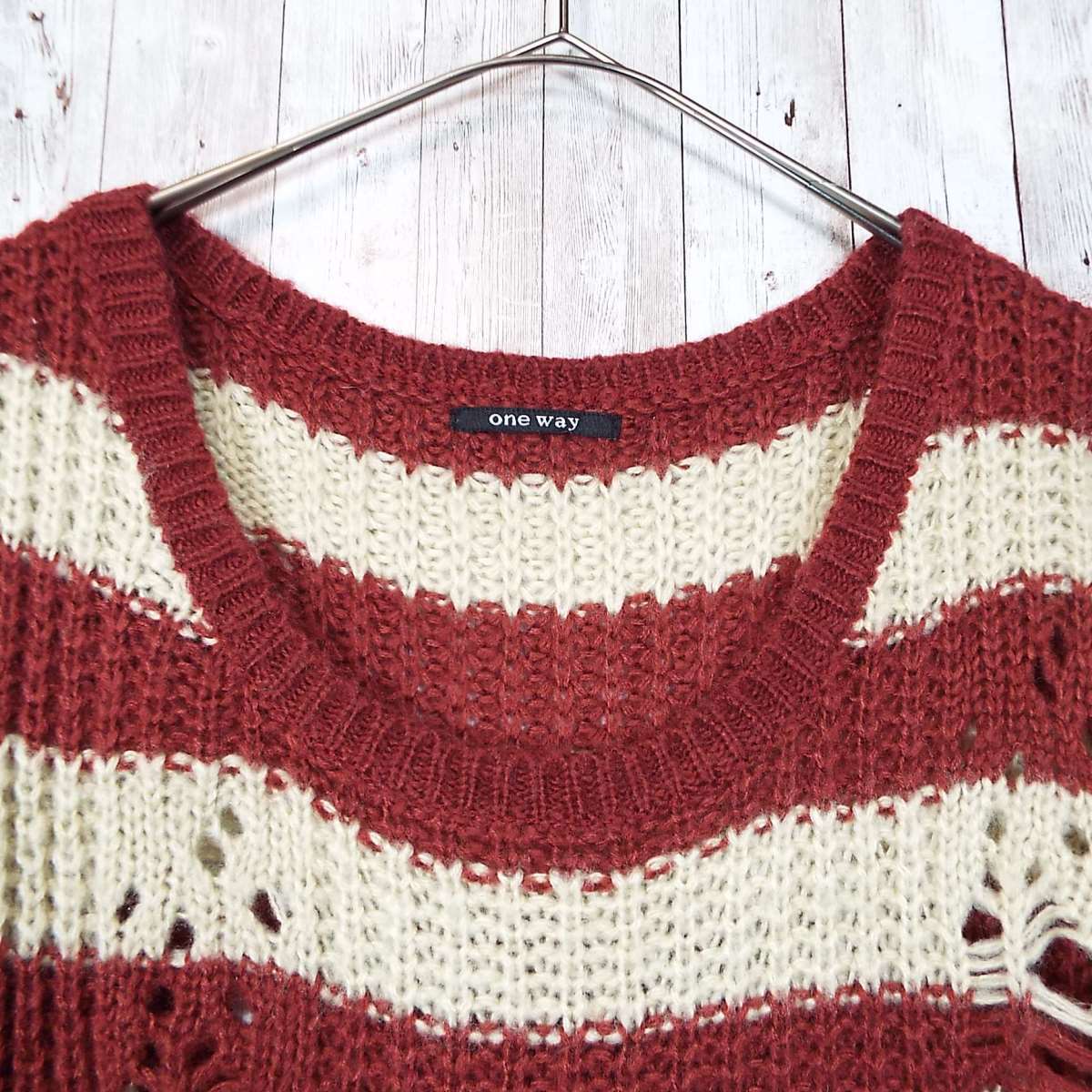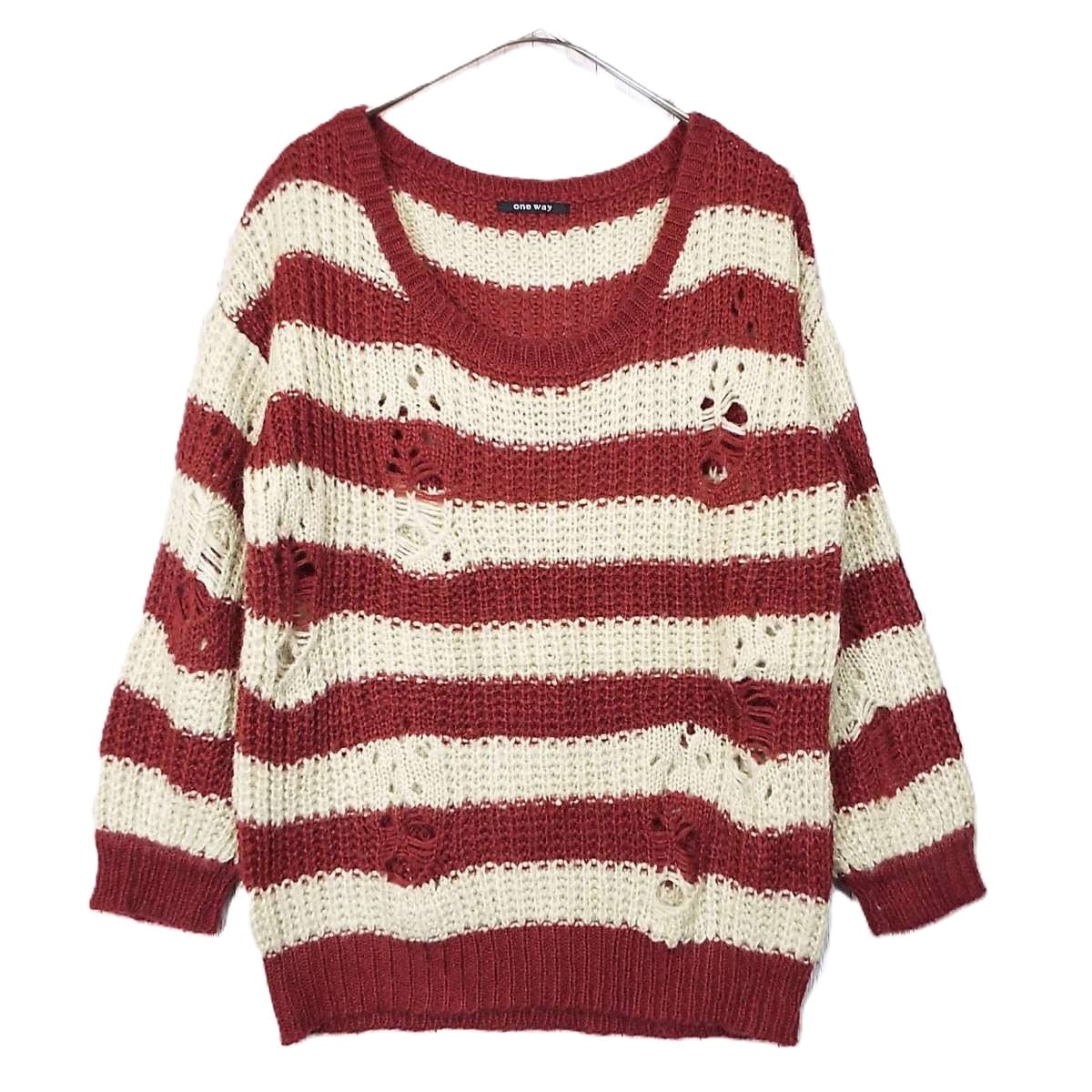 【ゆるだぼニット】ONE WAY ワンウェイ ローゲージ 長袖ニットセーター フリーサイズ ブラウンベージュ・エンジ【湘南倉庫】レディース古着 オーバーシルエット