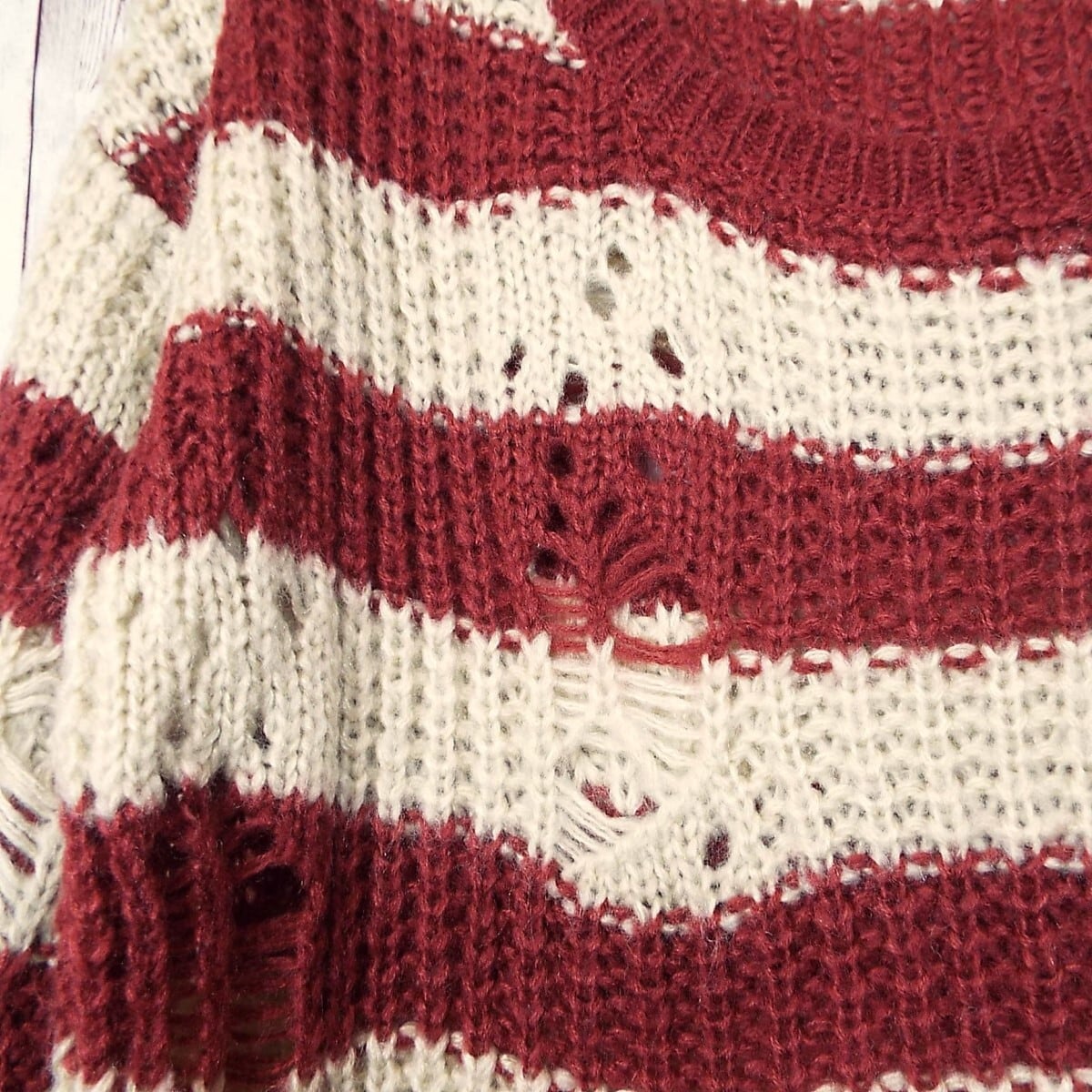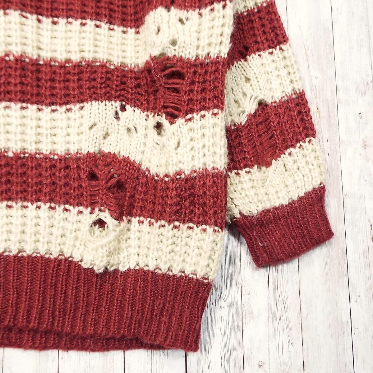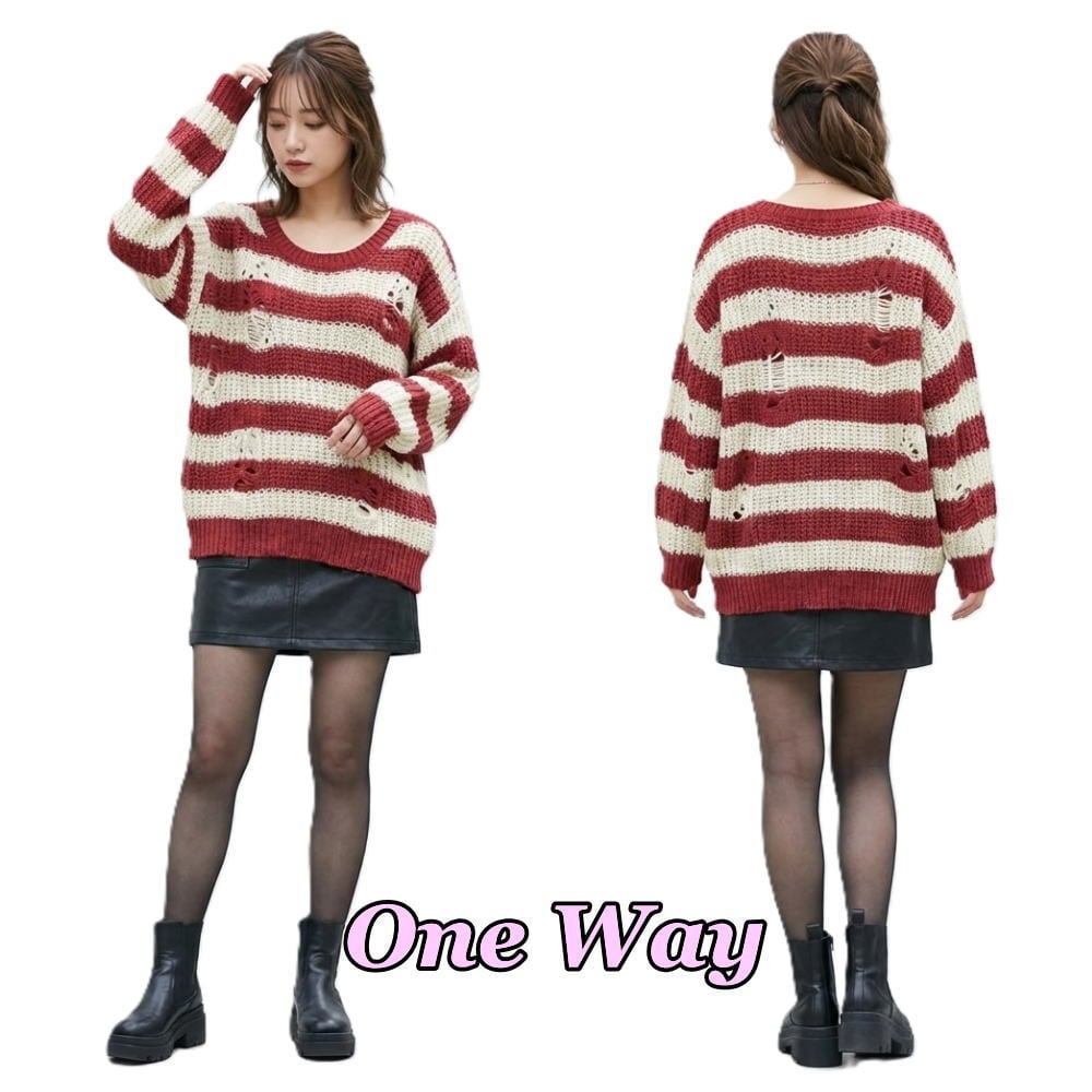 【ゆるだぼニット】ONE WAY ワンウェイ ローゲージ 長袖ニットセーター フリーサイズ ブラウンベージュ・エンジ【湘南倉庫】レディース古着 オーバーシルエット