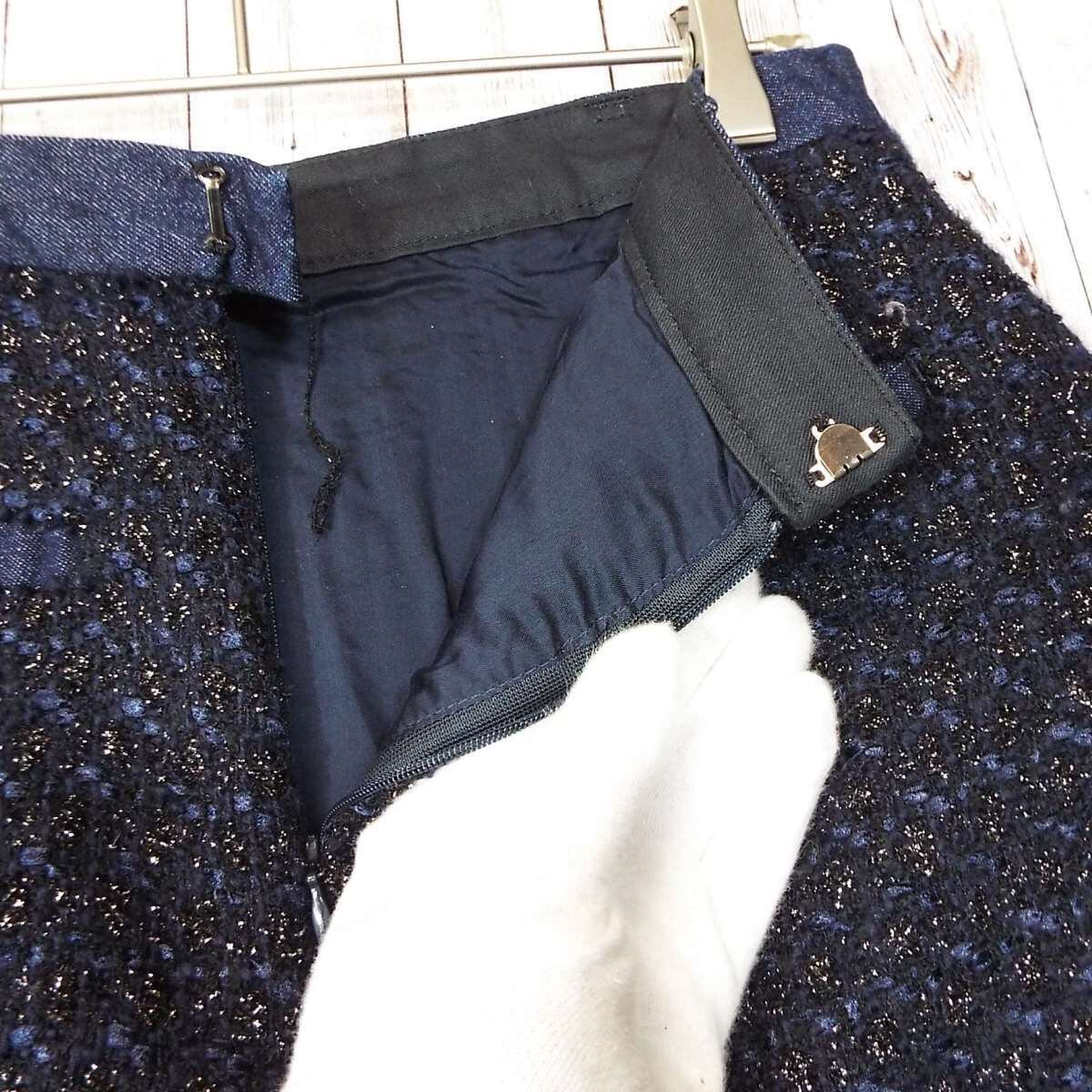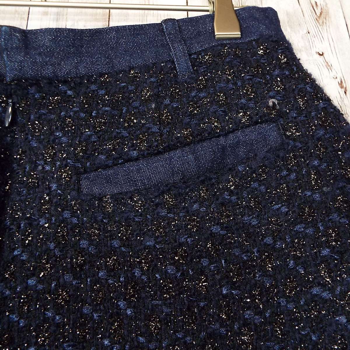 ・落ち着いたネイビーブルー。メランジの総柄の中に、ラメが入った素敵なデザインスカートです。