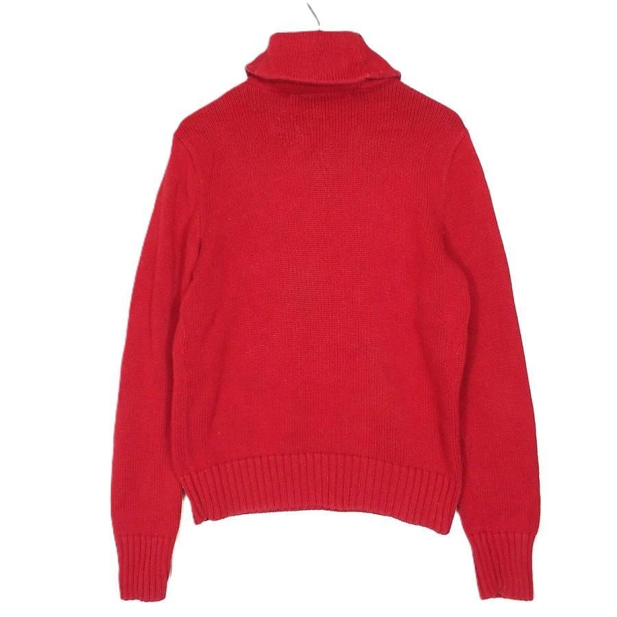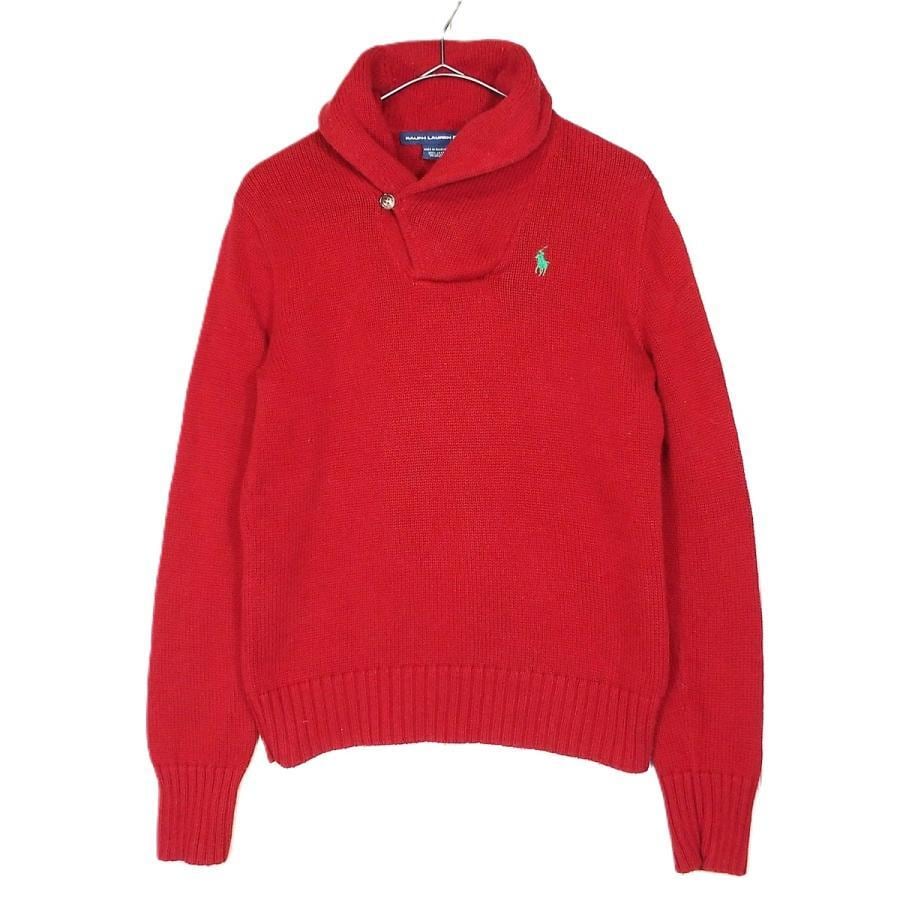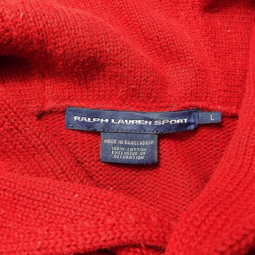 【アメリカ古着】RALPH LAUREN SPORT ラルフローレンスポーツ ワンポイントロゴ刺繡 ショールカラー 長袖ニットセーター コットン100% Lサイズ レッド赤【湘南倉庫】レディースブランド古着