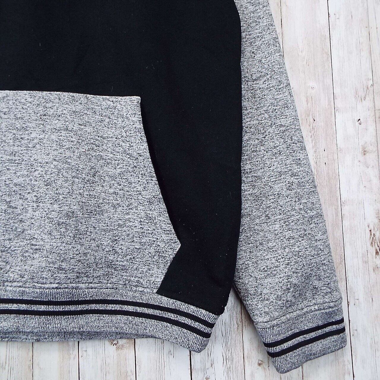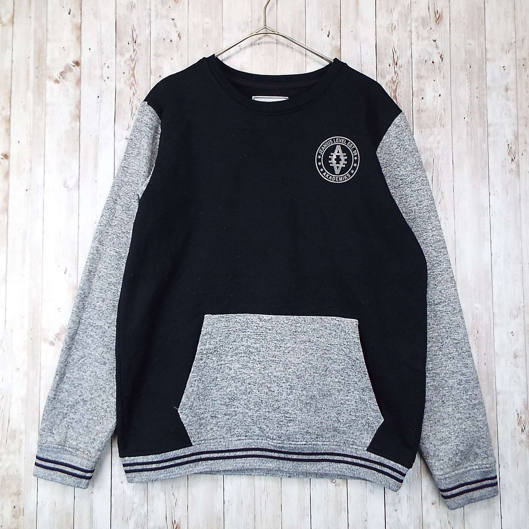 【アメリカ古着】【オーバーサイズ】akademiks アカデミクス JEANIUS LEVEL EST.99 バイカラー ポケット 長袖スウェット ブラック レディースXLサイズ 霜降りグレーブラック【仙台倉庫】US古着 4912345017123 レディース古着