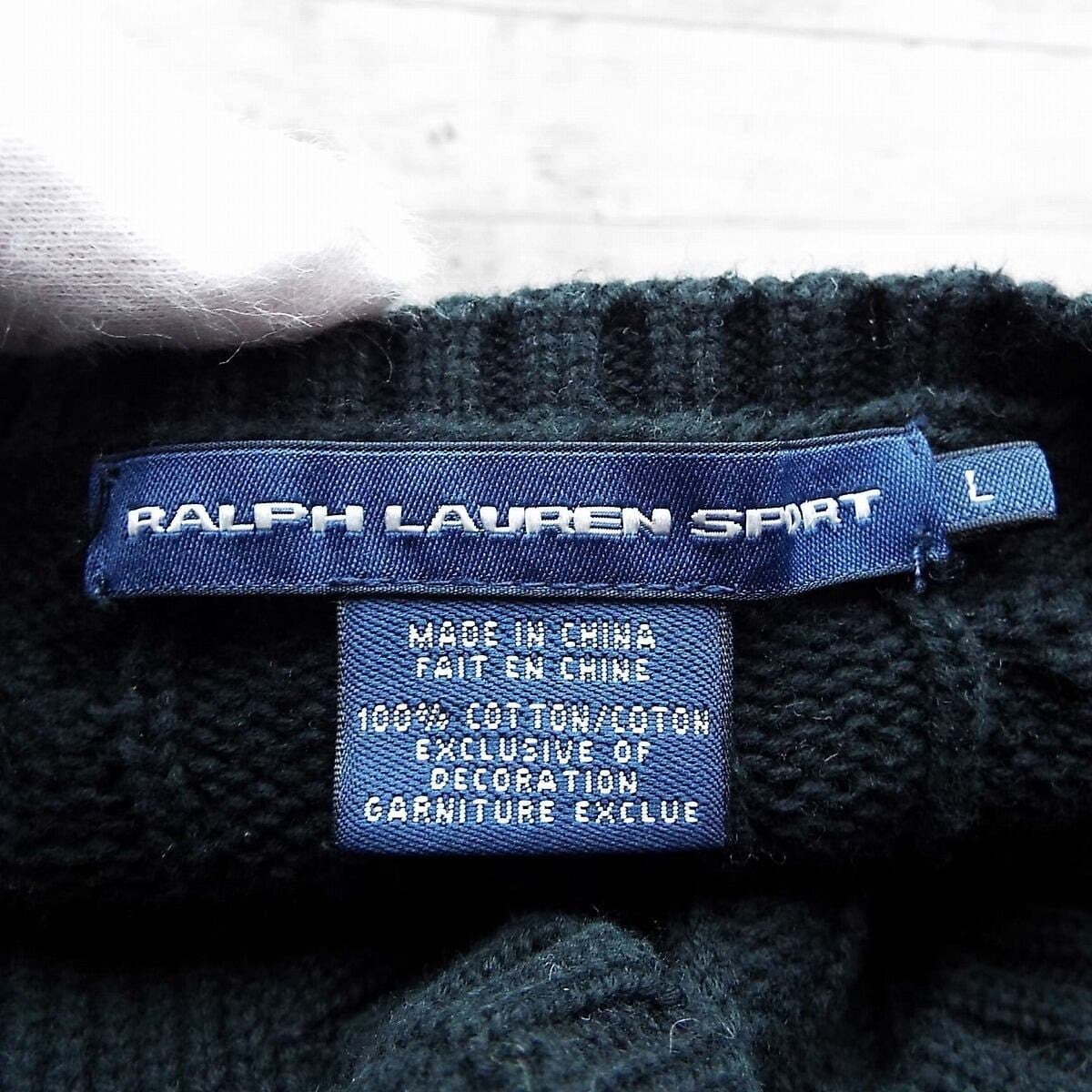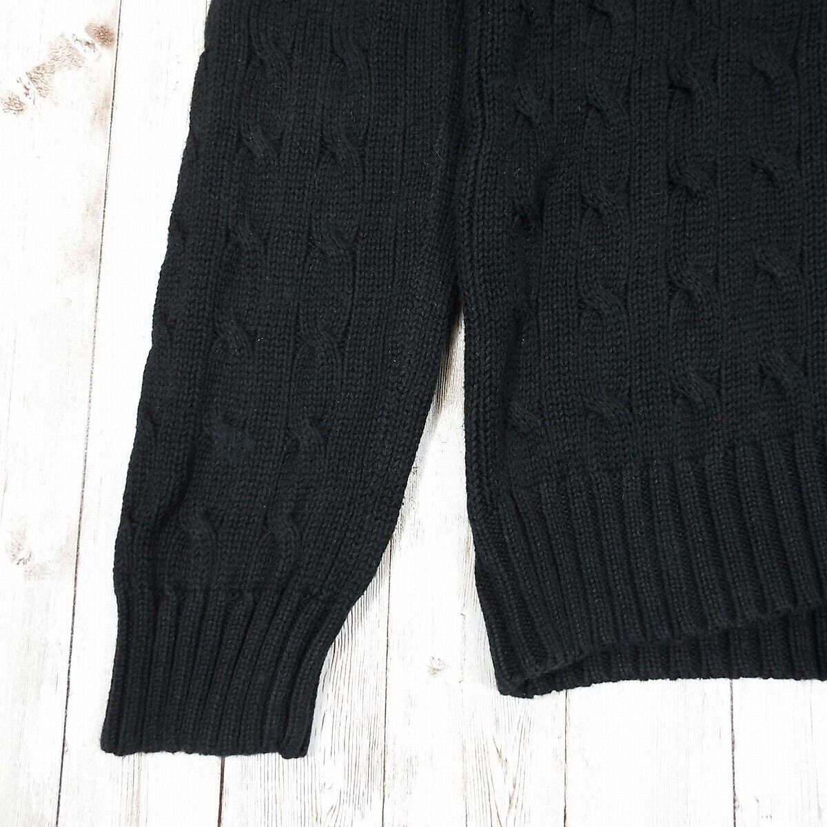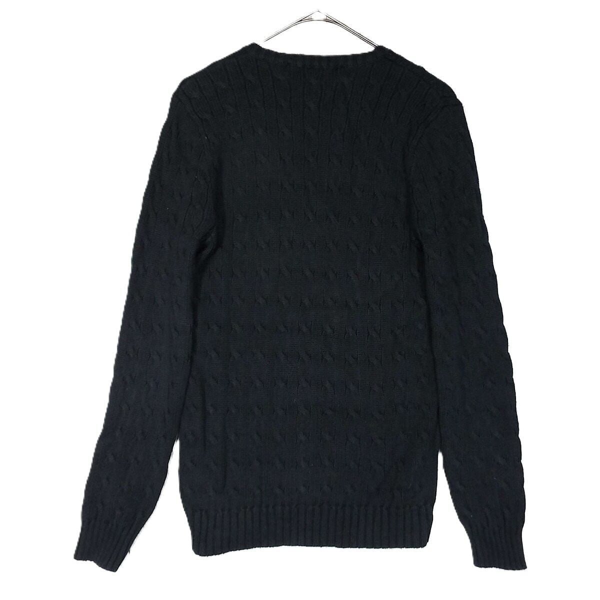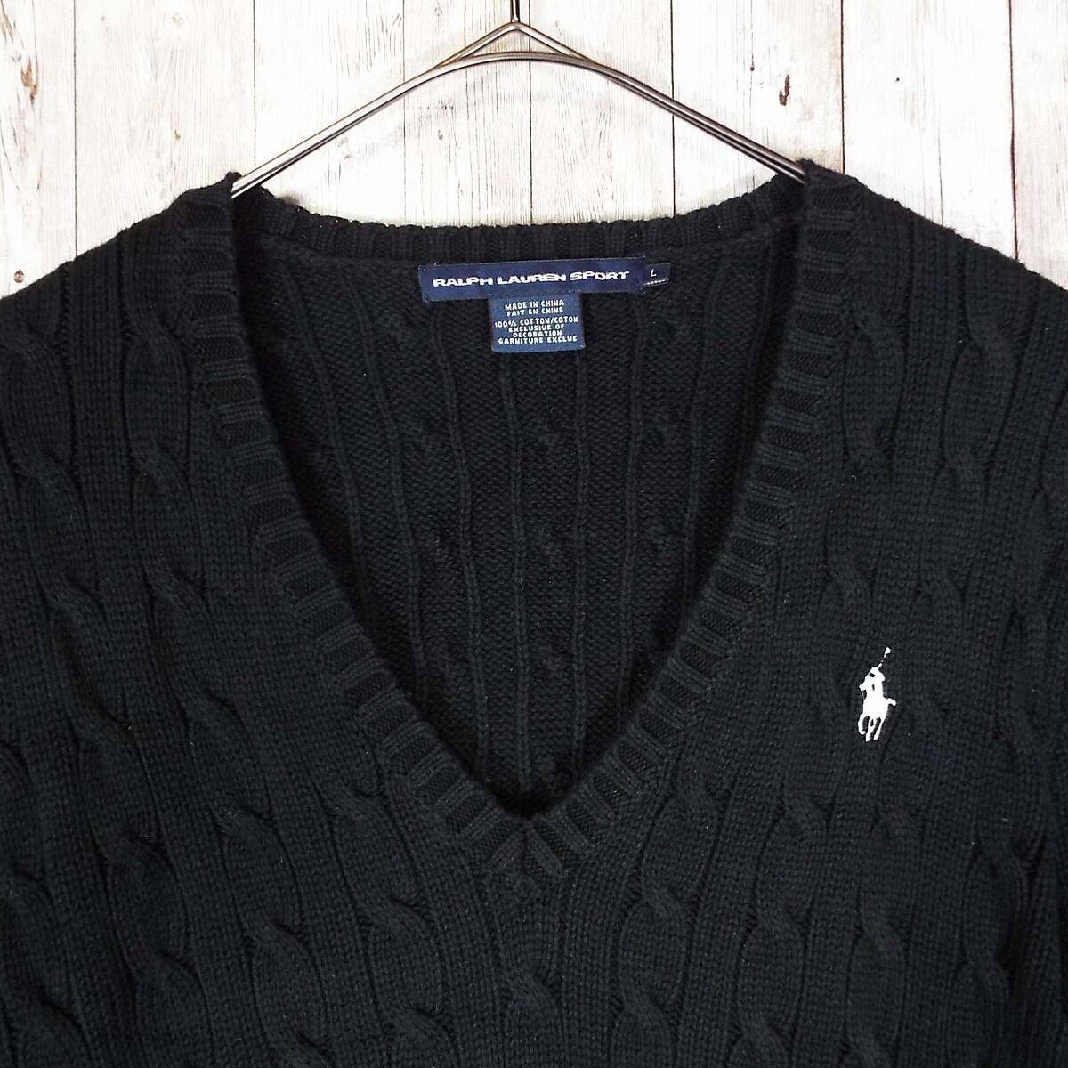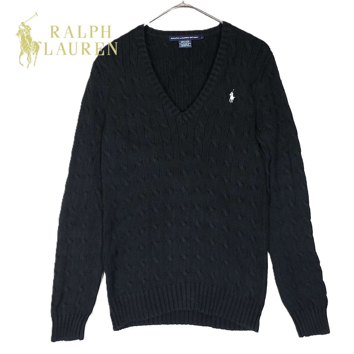 【アメリカ古着】RALPH LAUREN SPORT ラルフローレン・スポーツ ポニー刺繍 Vネック 無地 コットン100% 長袖ニット セーター Lサイズ(肩幅38cm) ブラック【湘南倉庫】レディース古着