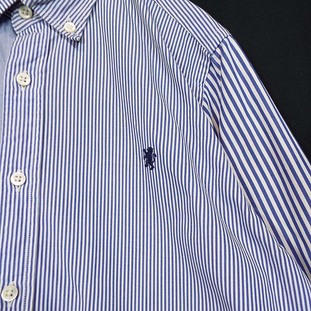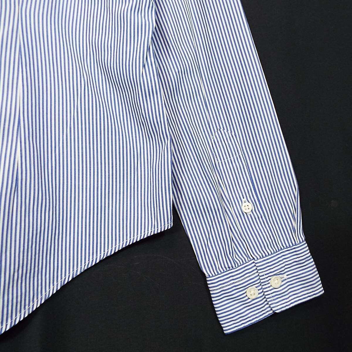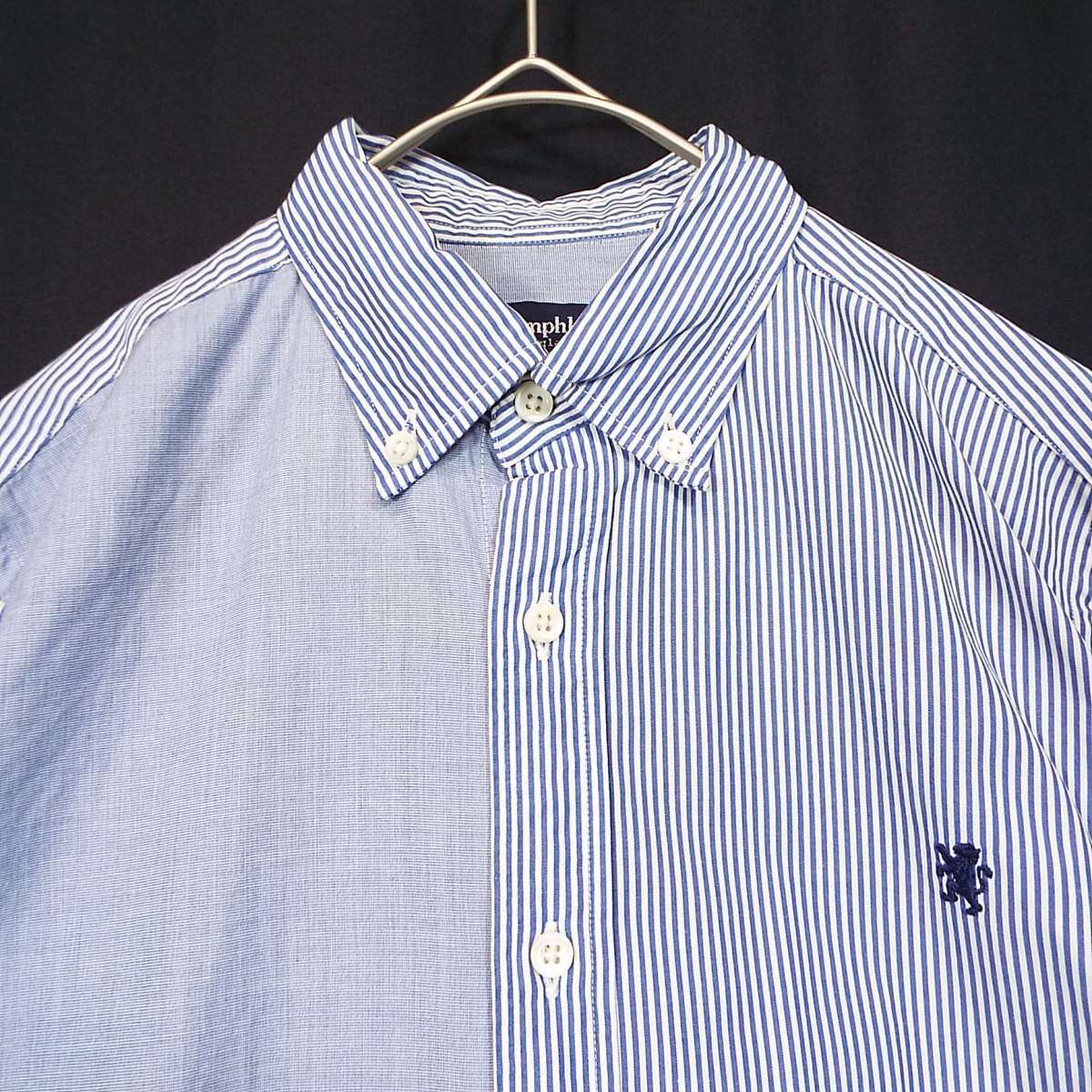 【アシンメトリーデザイン】Gymphlex(ジムフレックス)無地&ストライプ柄 ボタンダウン 長袖シャツ サイズ14(肩幅38cm)ホワイト・ブルー・グレー コットン100%【湘南倉庫】レディース古着