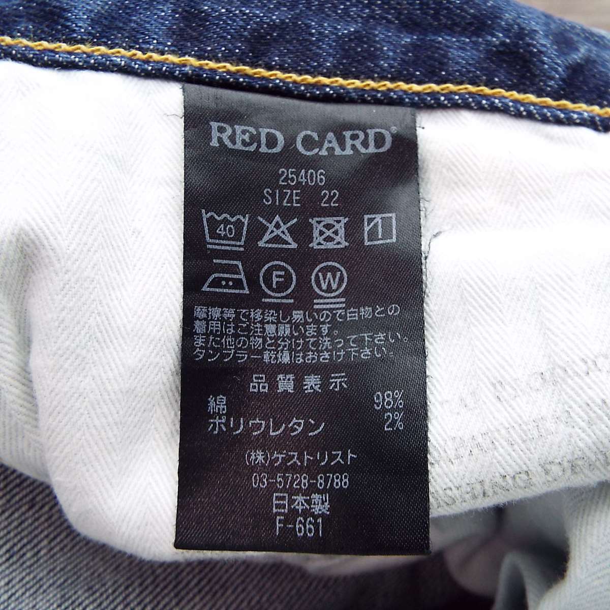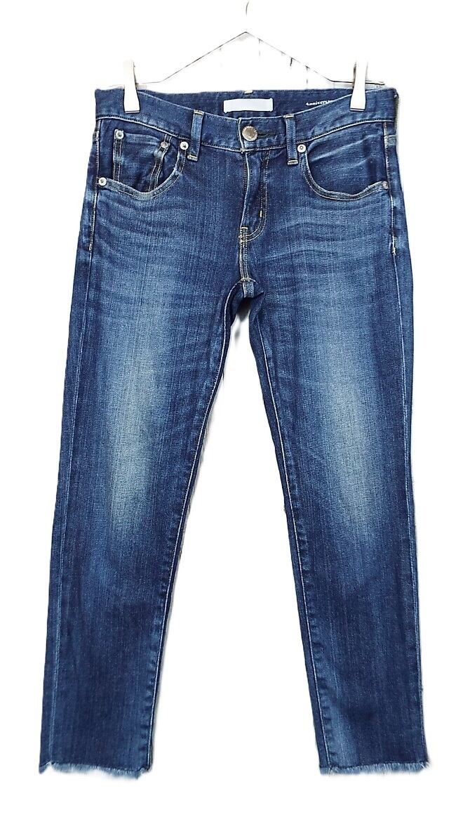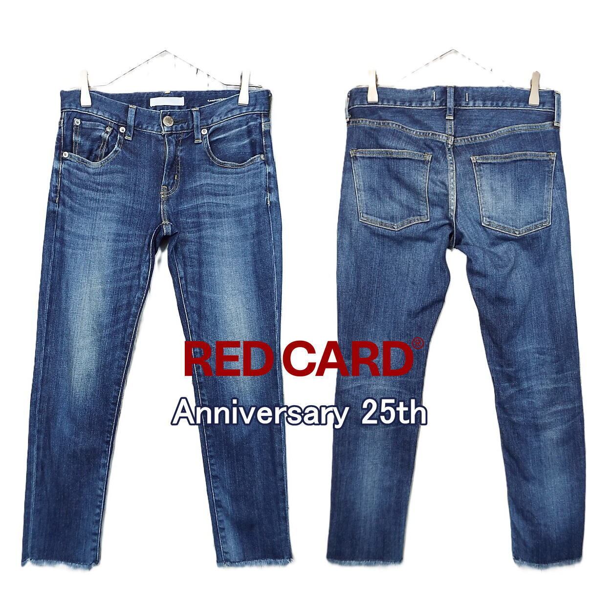 【W22(ウエスト76cm)】RED CARD レッドカード Anniversary 25th 25406 ストレッチ素材 スリム テーパード デニム ボーイフレンド カットオフ クロップド ボトムス インディゴブルー【湘南倉庫】レディースブランド古着