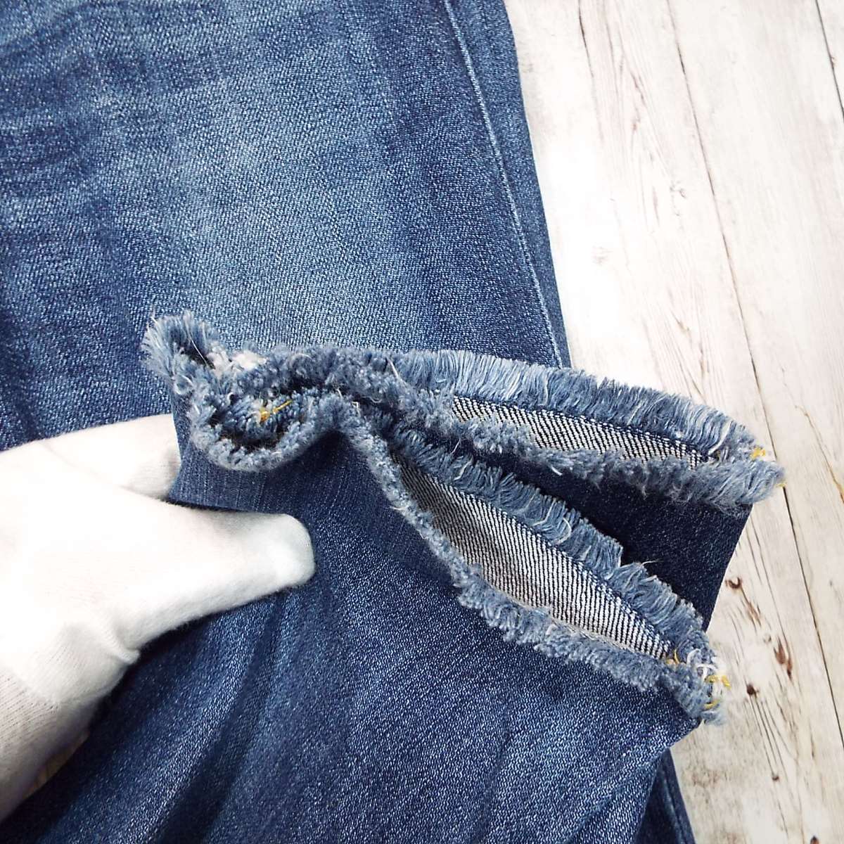 ・やや細めのシルエットで、裾はカットオフ。