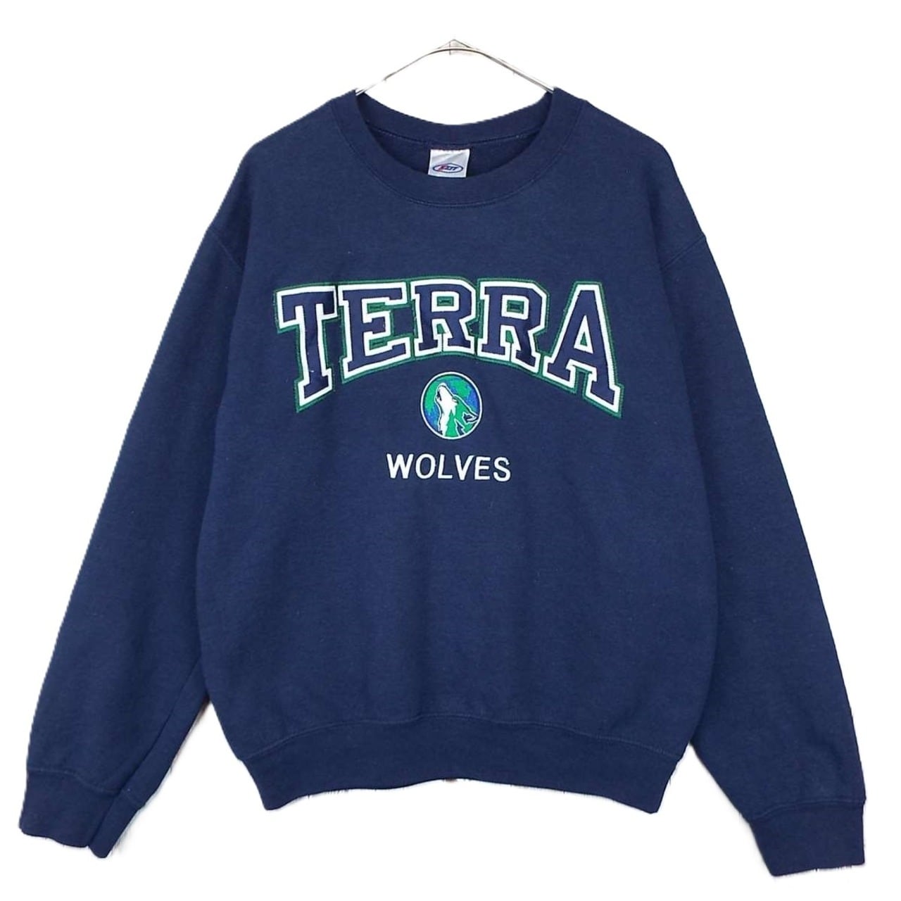 【アメリカ古着】【3Dパッチロゴ】NEFF ネフ TERRA Wolves Athletics オオカミ 狼 ウルフ 刺繍パッチロゴ 長袖スウェットトレーナー Sサイズ(肩幅52cm)ネイビー コットン・ポリエステル(50/50) 【湘南倉庫】USアメリカブランドフルギ