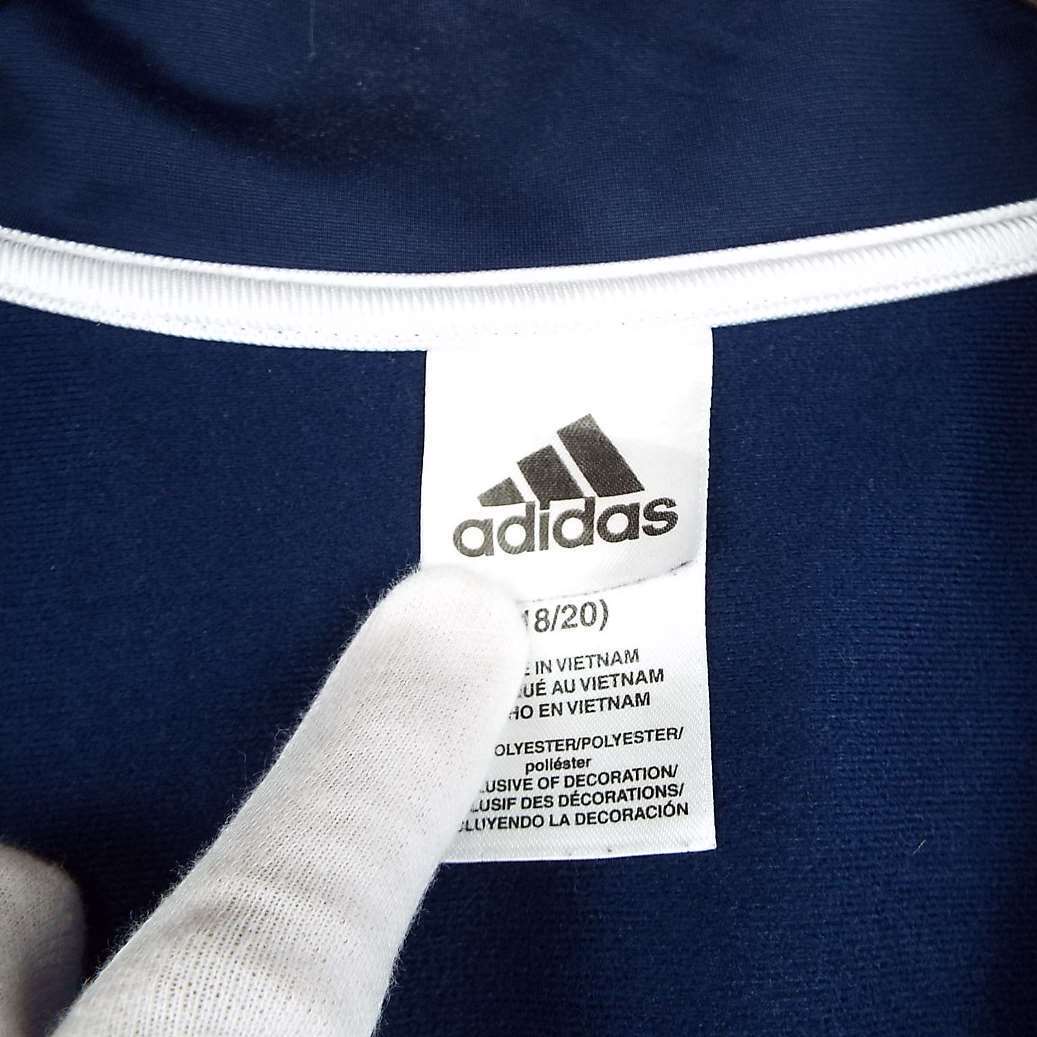 【アメリカ古着】adidas アディダス 胸ロゴ スリーストライプ 長袖トレーニングジャケット ジャージ フルジップアップ XLサイズ(肩幅38cm) ネイビー 【湘南倉庫】USブランドフルギ スポーツ