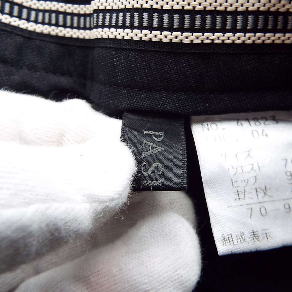 ・ウエスト内側にズレ防止テープがついた、春夏向きのウールスラックスパンツです。