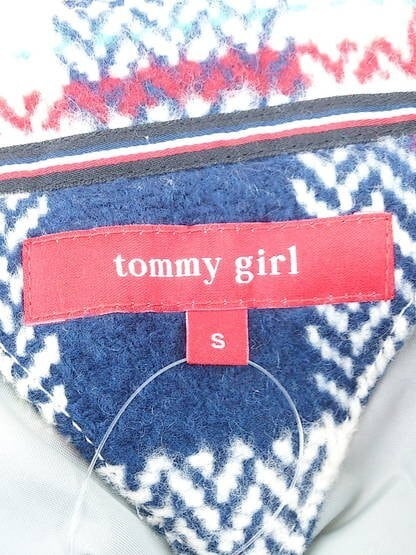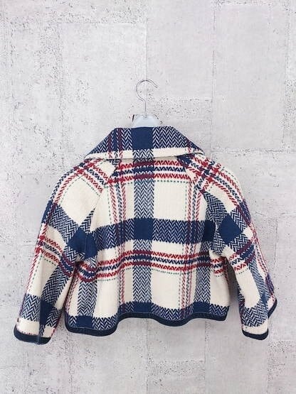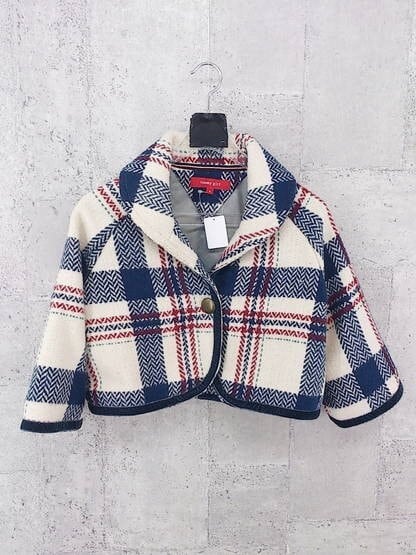 【ショート丈JK】Tommygirl(トミーガール) オンブレチェック柄 ラグラン 七分袖 ジャケット・ボレロ・コート Sサイズ(身幅488cm)アイボリー・ネイビー・レッド【仙台倉庫】レディースブランド古着