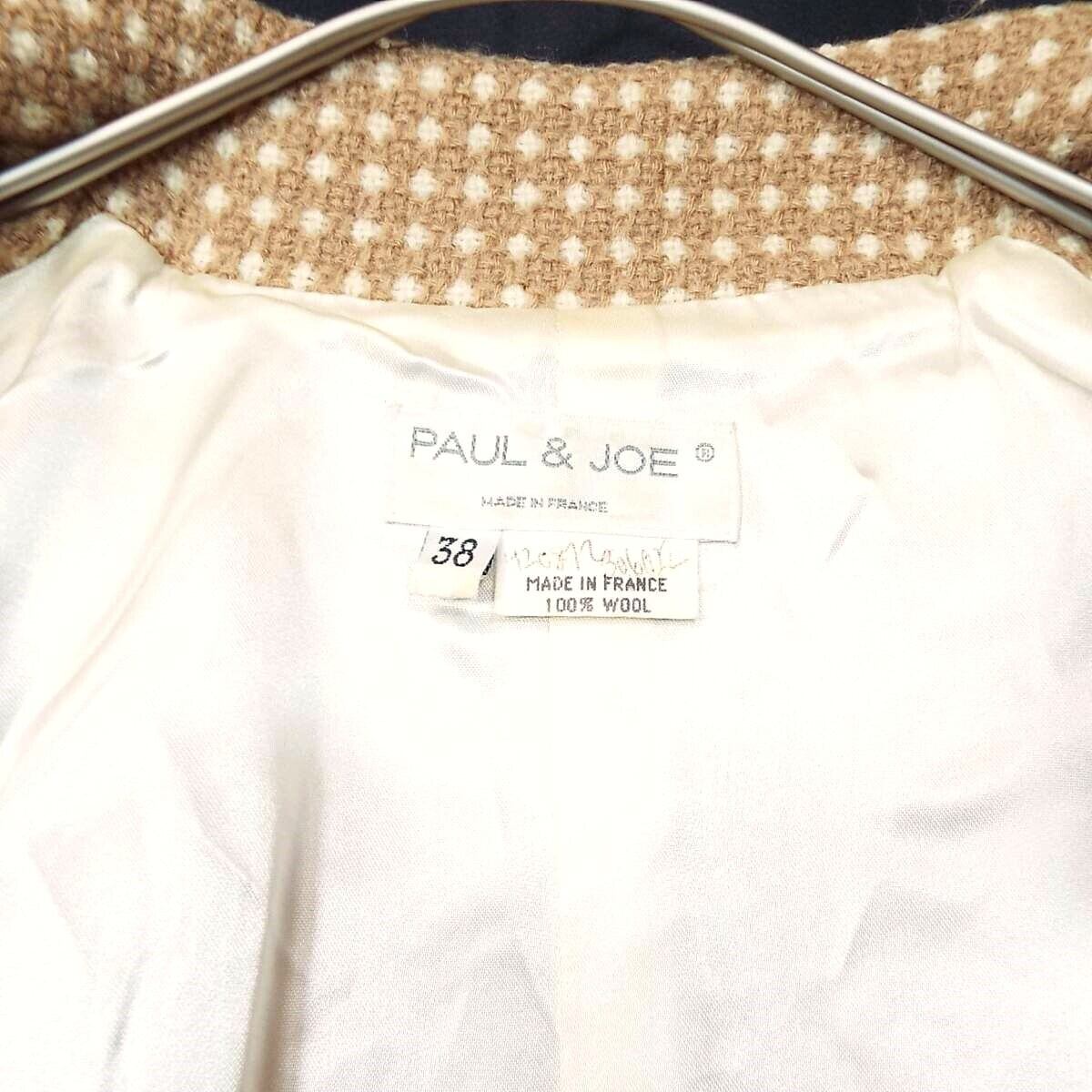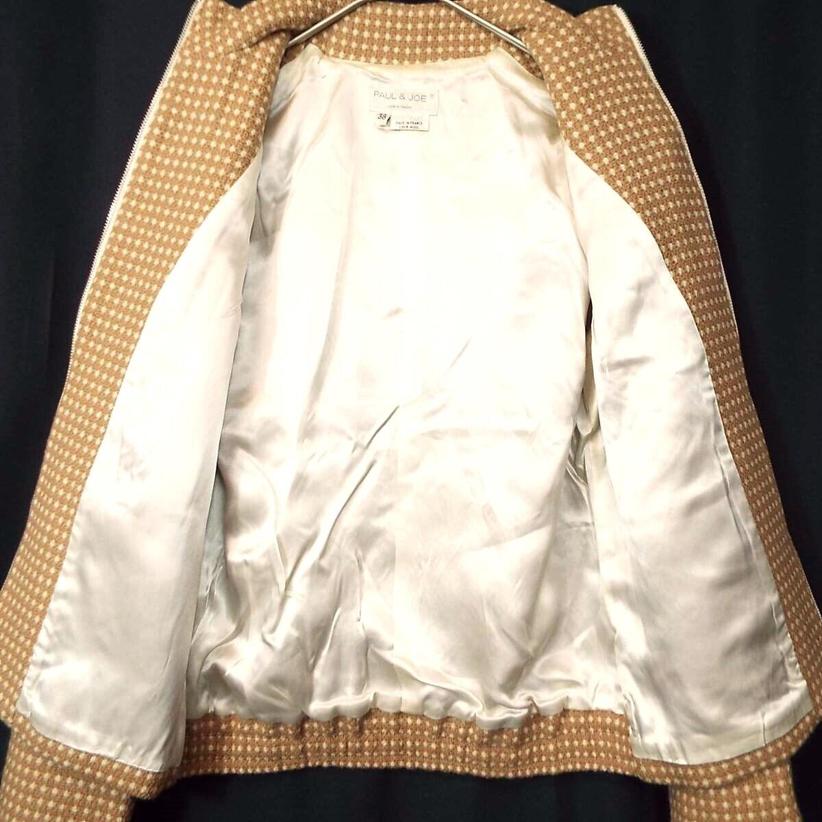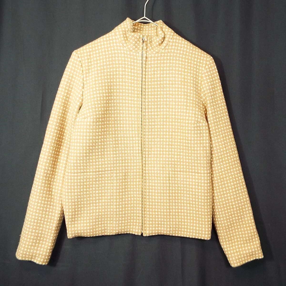 【フランス製】PAUL & JOE(ポール&ジョー) 総柄 長袖 スタンドカラー ZIP ジップアップ ジャケット サイズ38(肩幅37cm)ライトブラウン・ベージュ【湘南倉庫】レディースブランド古着