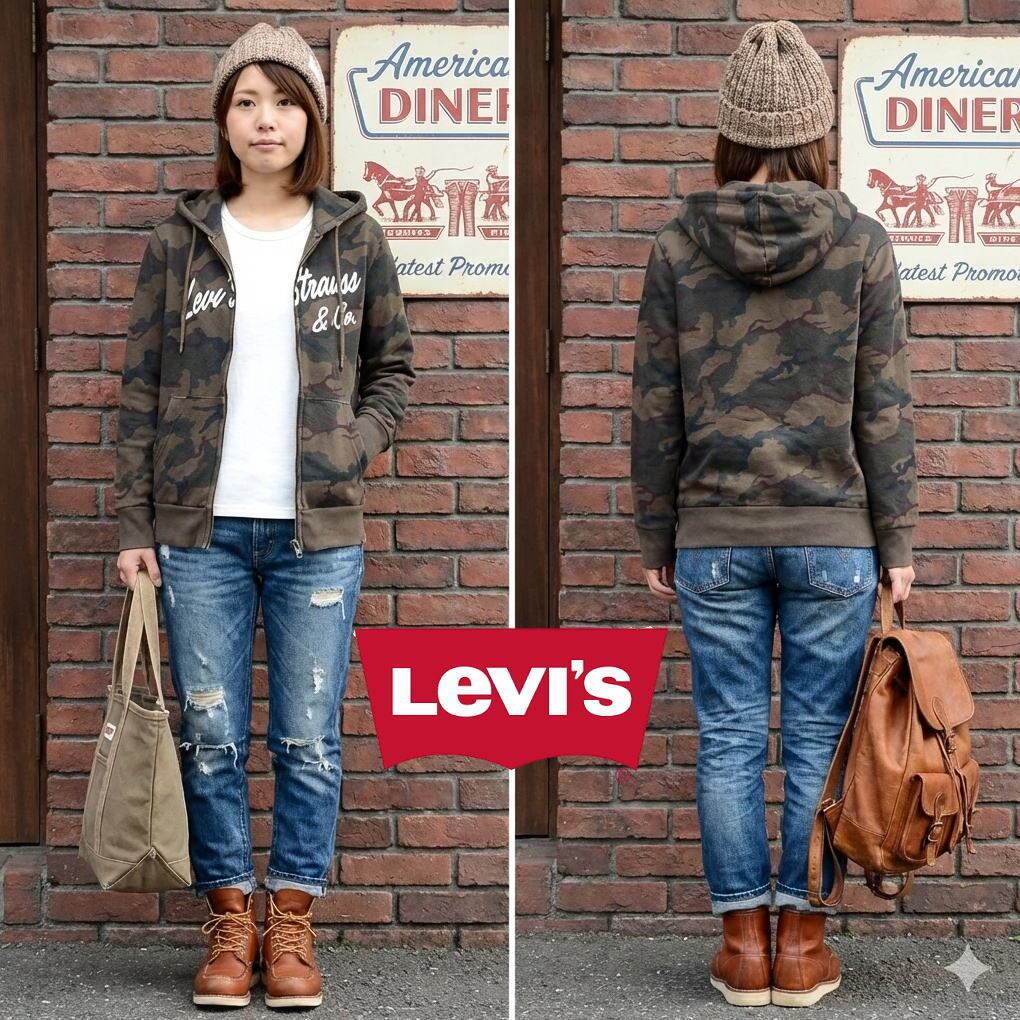・リーバイスの筆記体ロゴが素敵なジップアップパーカーです。
