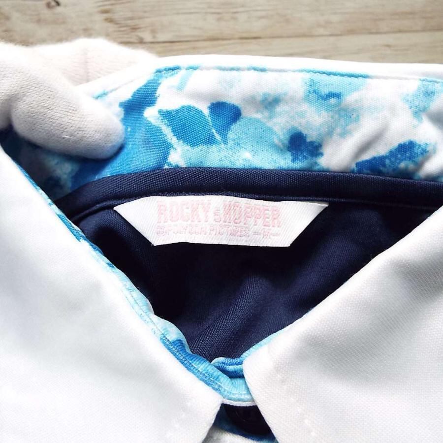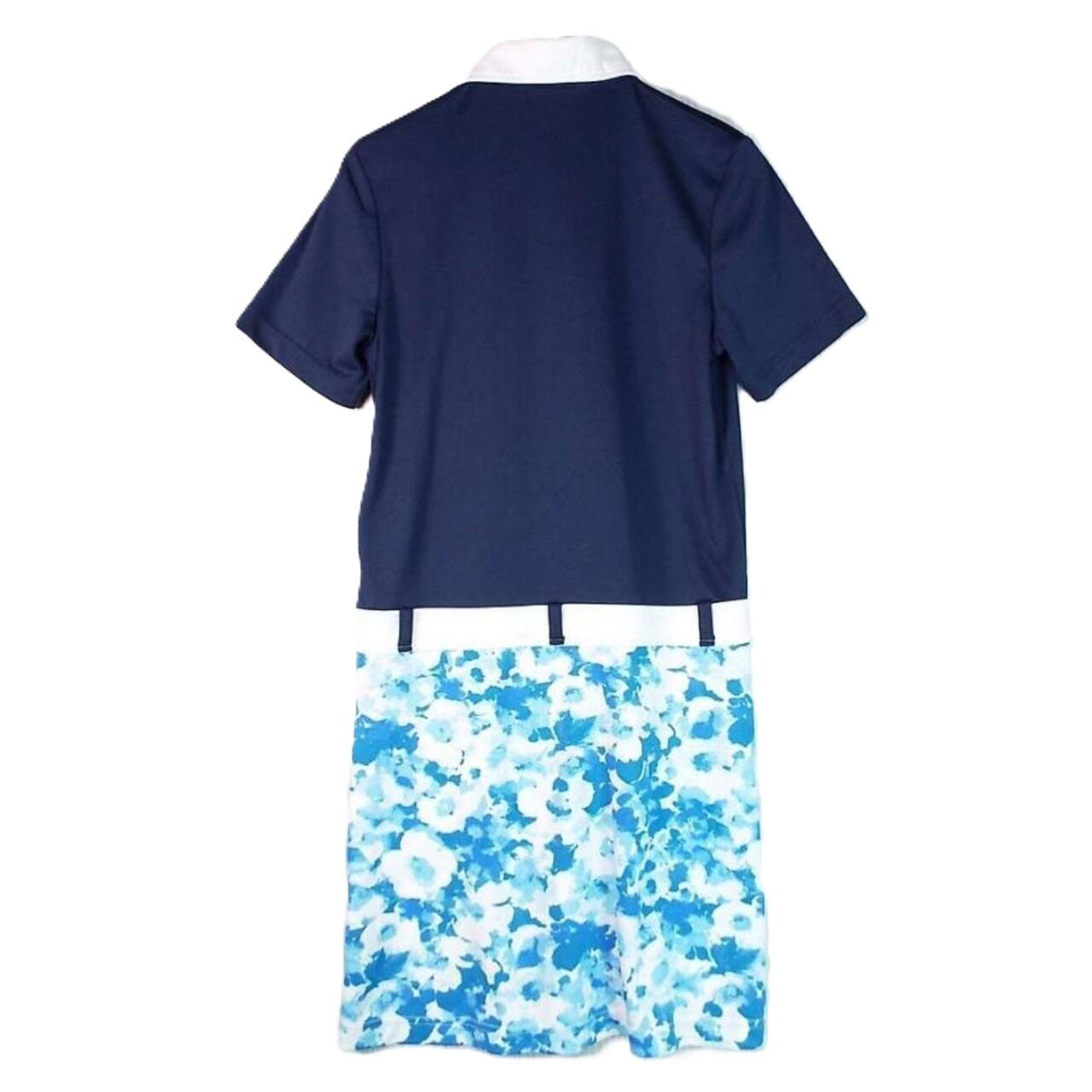 ・トップはネイビーのプレーンデザイン。ボトムスは綺麗な花柄の素敵な半袖ポロワンピースです。
