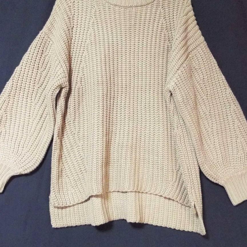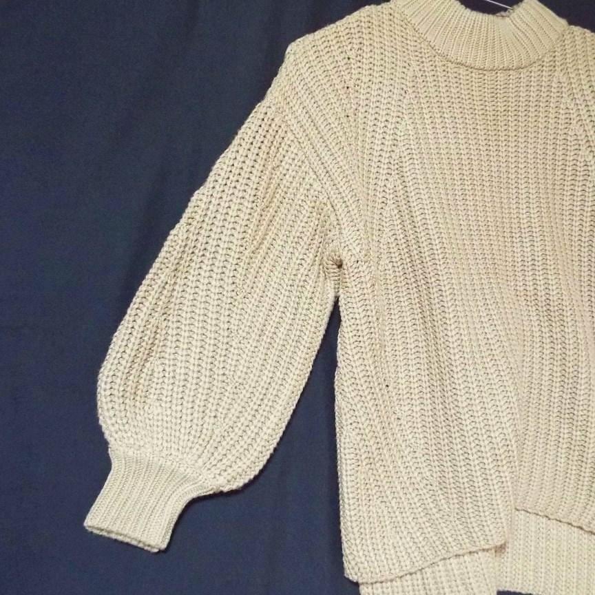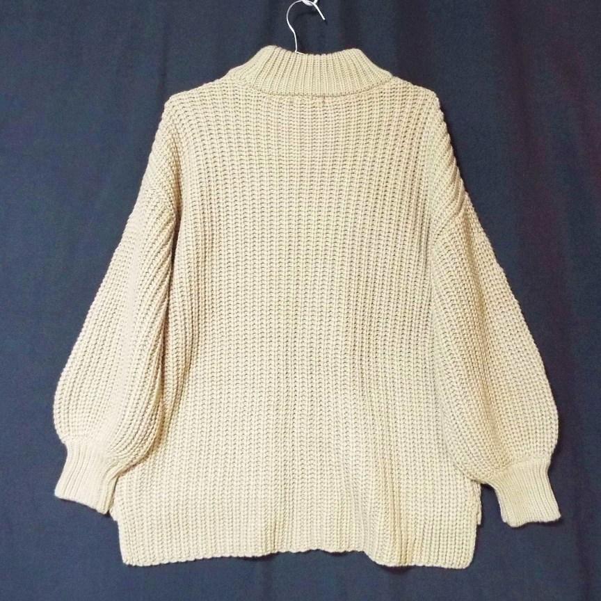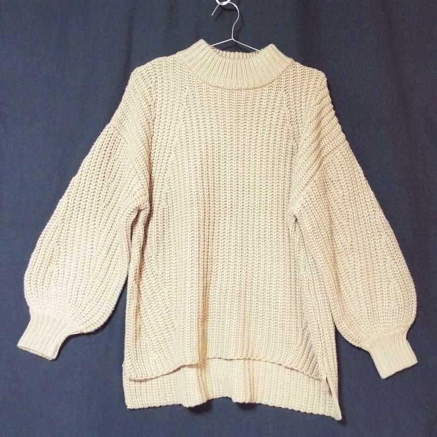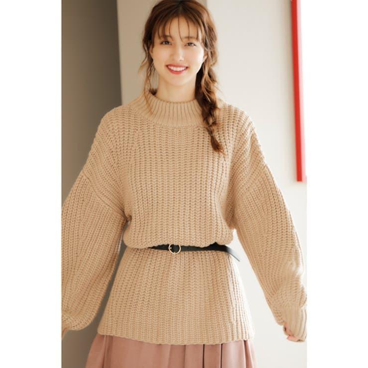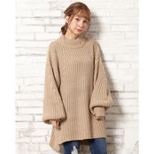 ・ビッグシルエットとボリュームスリーブでトレンド感のある着こなしがニットチュニック。