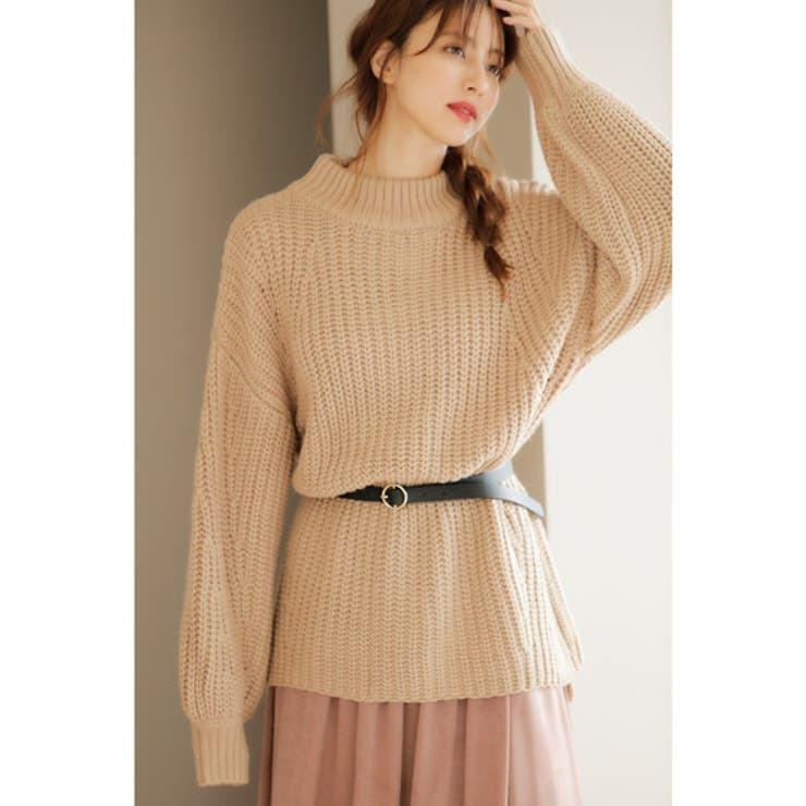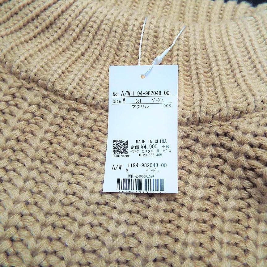 【タグ付き未使用品】INGNI イング 両畦モックネックチュニック 長袖 ニット セーター|ベージュ|Mサイズ【湘南倉庫】レディースブランド