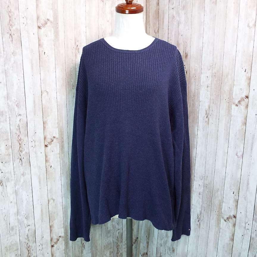 【アメリカ古着】TOMMY HILFIGER トミーヒルフィガー 長袖ニット セーター XXLサイズ(肩幅52cm)コットン・ナイロン【湘南倉庫】