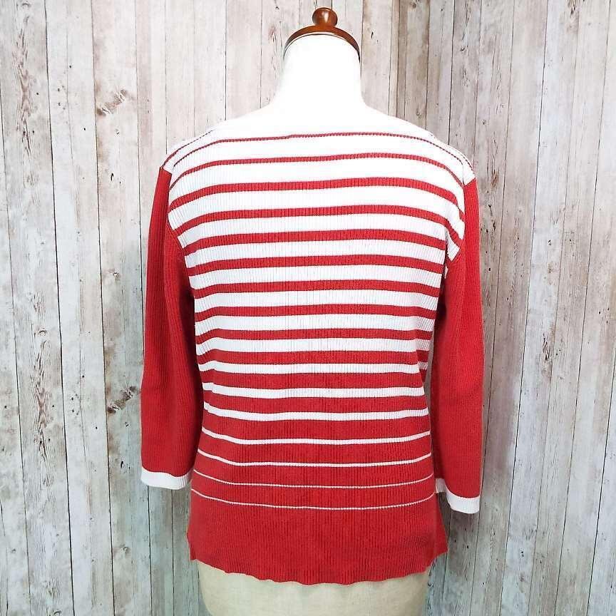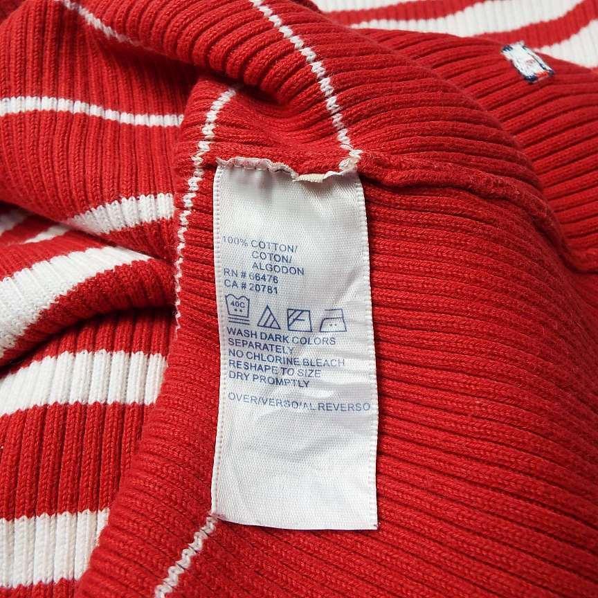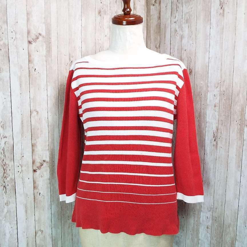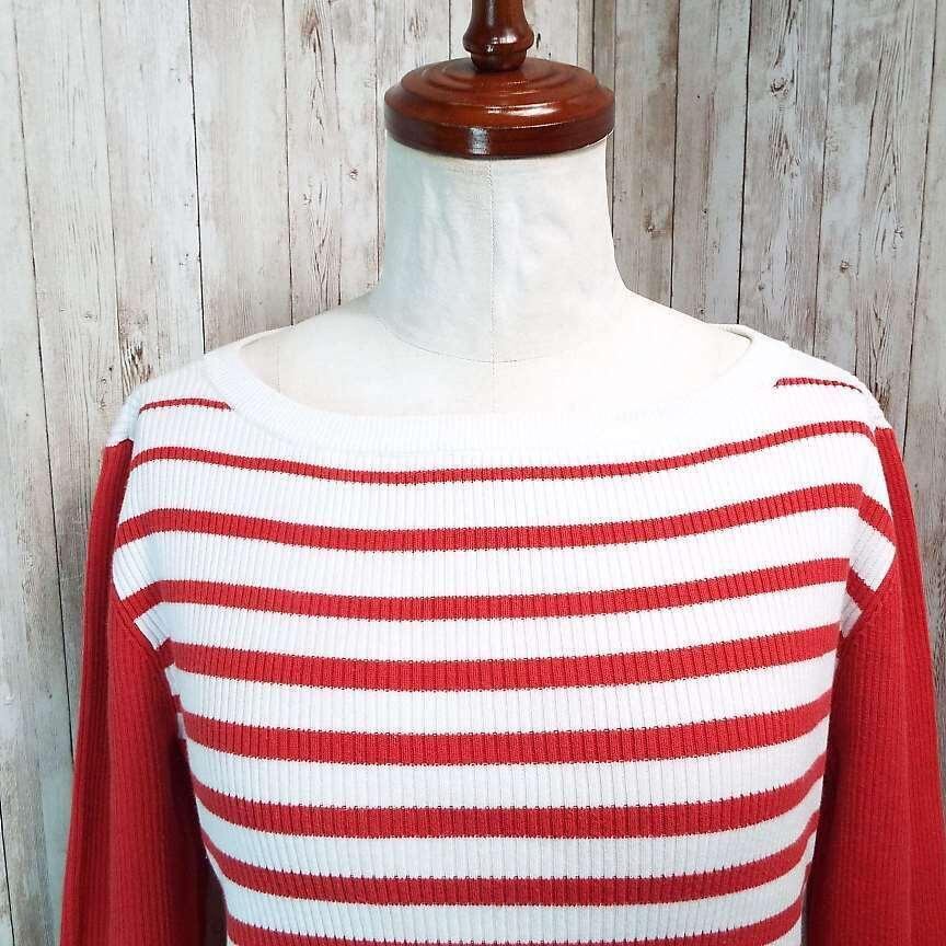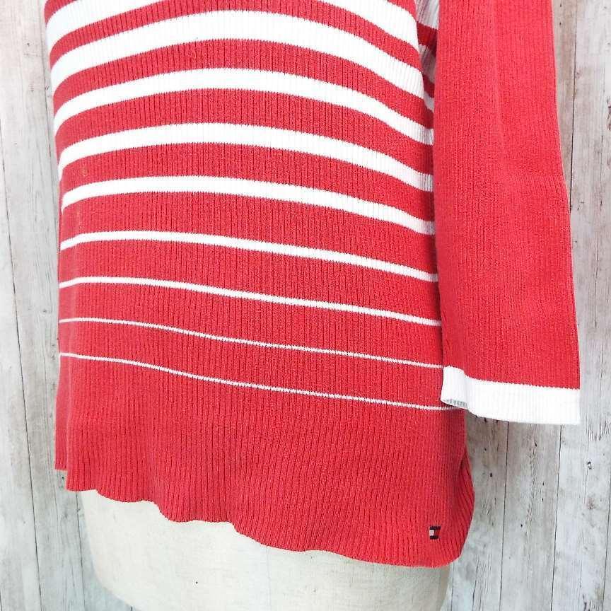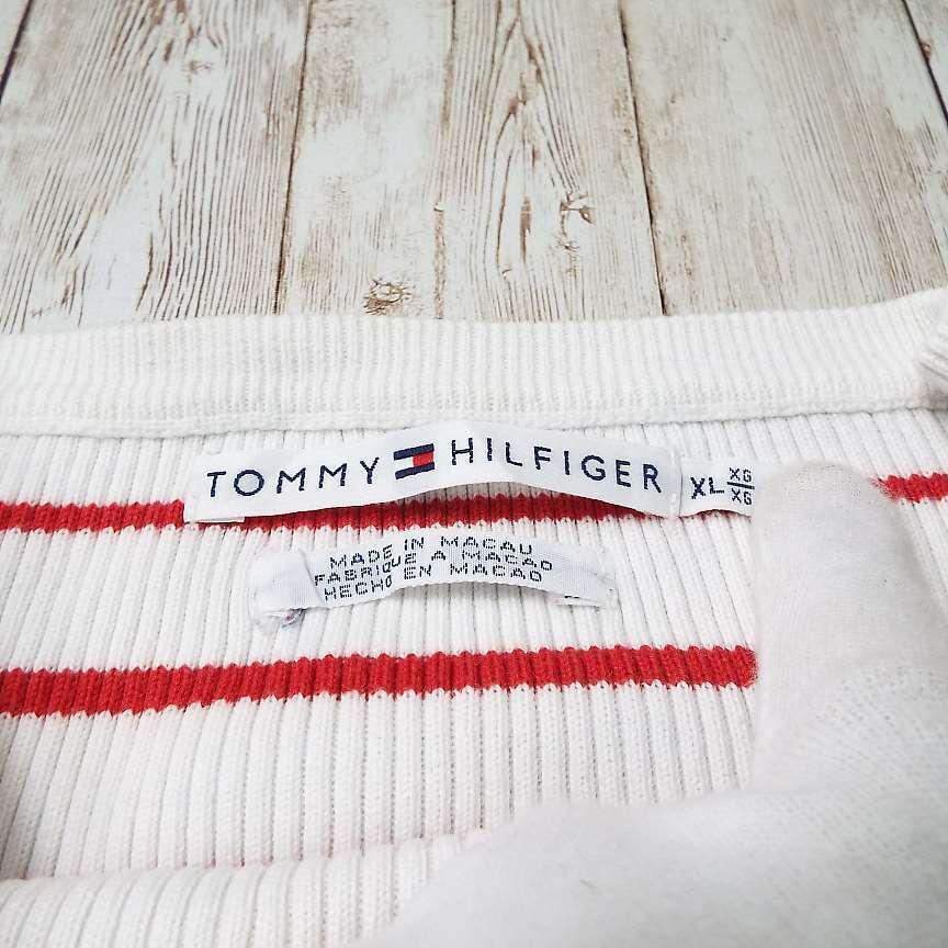 【アメリカ古着】TOMMY HILFIGER トミーヒルフィガー ボートネック 長袖ニット セーター XLサイズ コットン100% ホワイト・レッド【湘南倉庫】レディースブランド古着