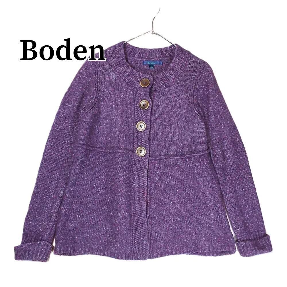 【ヨーロッパ古着】Boden ボーデン 木目調ボタン 霜降り 長袖ニットカーディガンー サイズ:L(肩幅35cm)ウール混紡 パープル【湘南倉庫】レディース古着 12390052