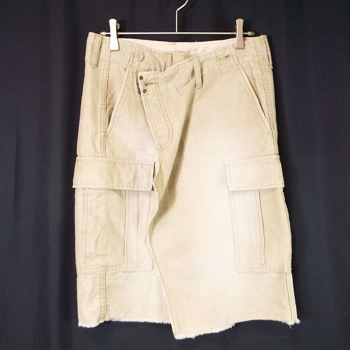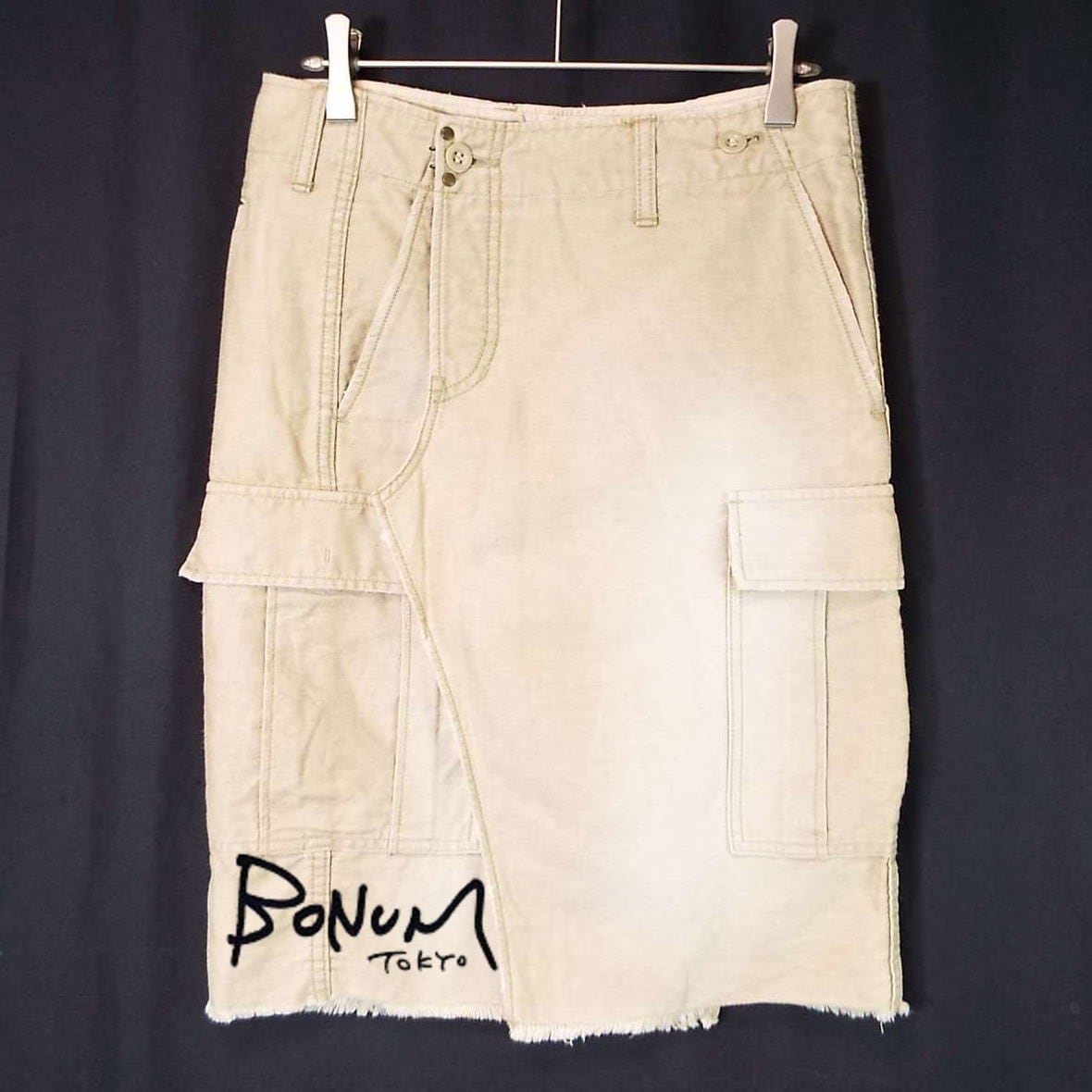 【リメイクブランド】BONUM TOKYO ボナムトーキョー(ベイクルーズ) 2WAYスタイル 巻きスカート サイズ36(ウエスト77cm)サンドベージュ リネン・コットン混紡【湘南倉庫】レディースブランドフルギ