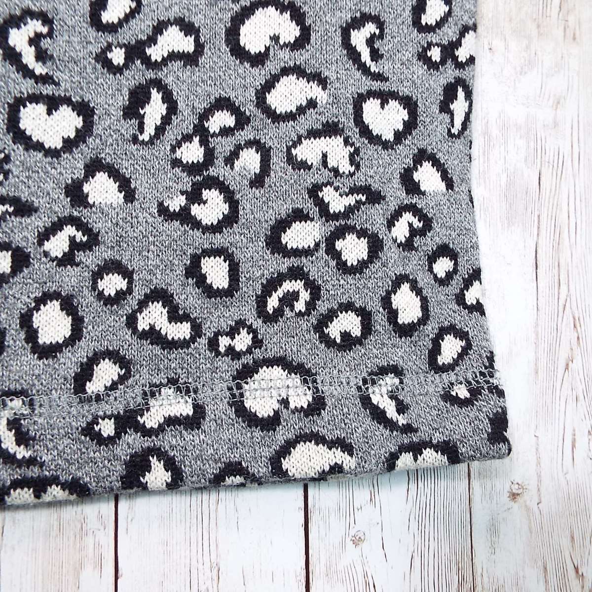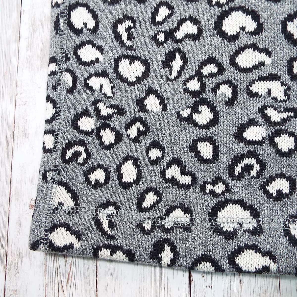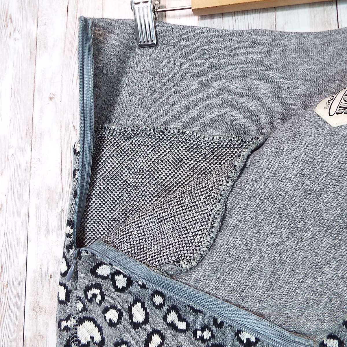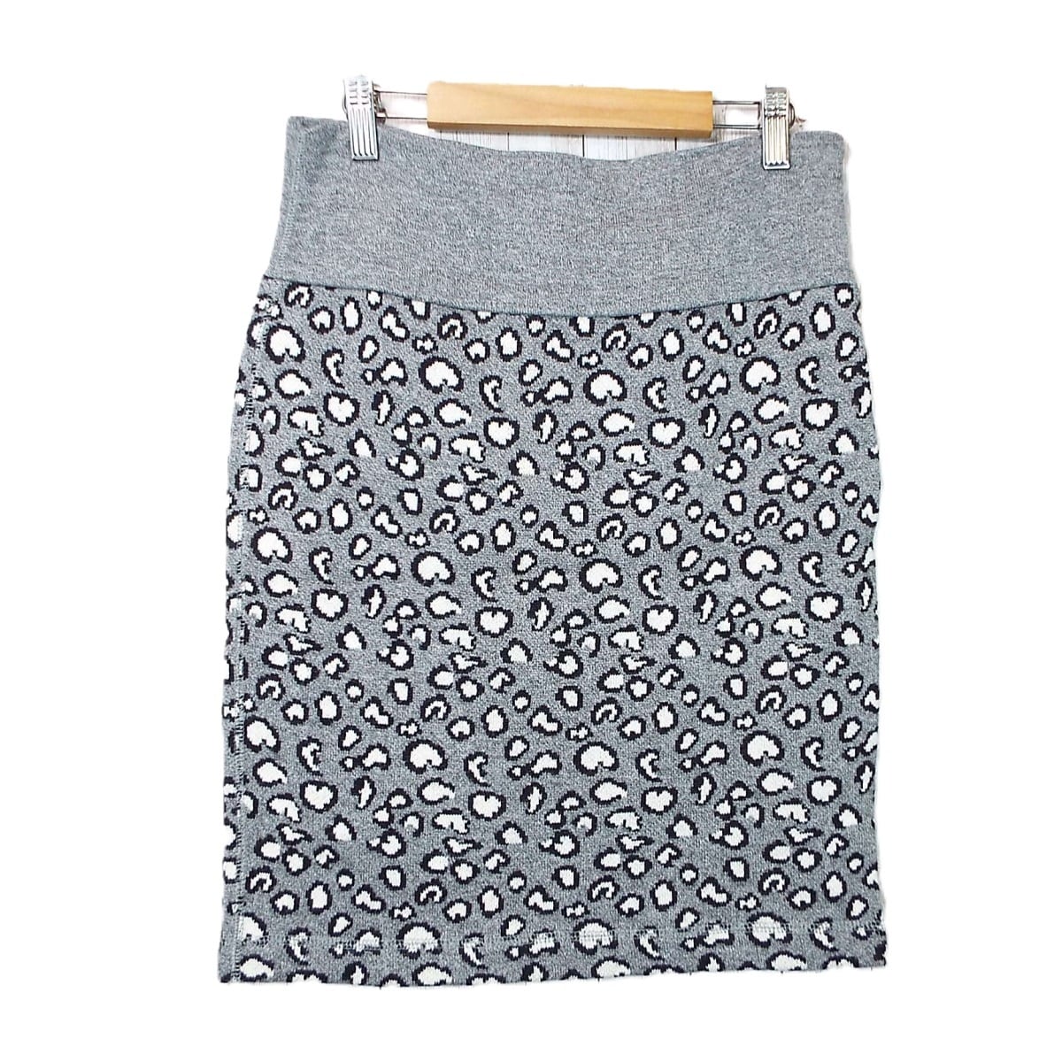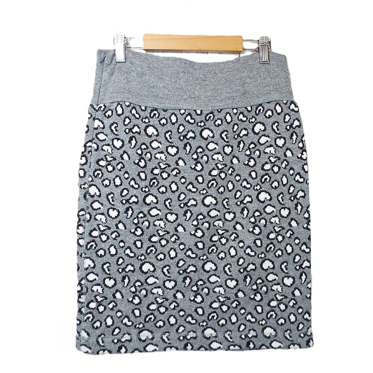 【ウエストリブ】MIRROR OF Shinzone(ミラーオブシンゾーン) 幾何学模様 総柄 膝丈 ニットスカート FOサイズ(ウエスト72〜74cm) ライトグレー【湘南倉庫】レディースブランド古着