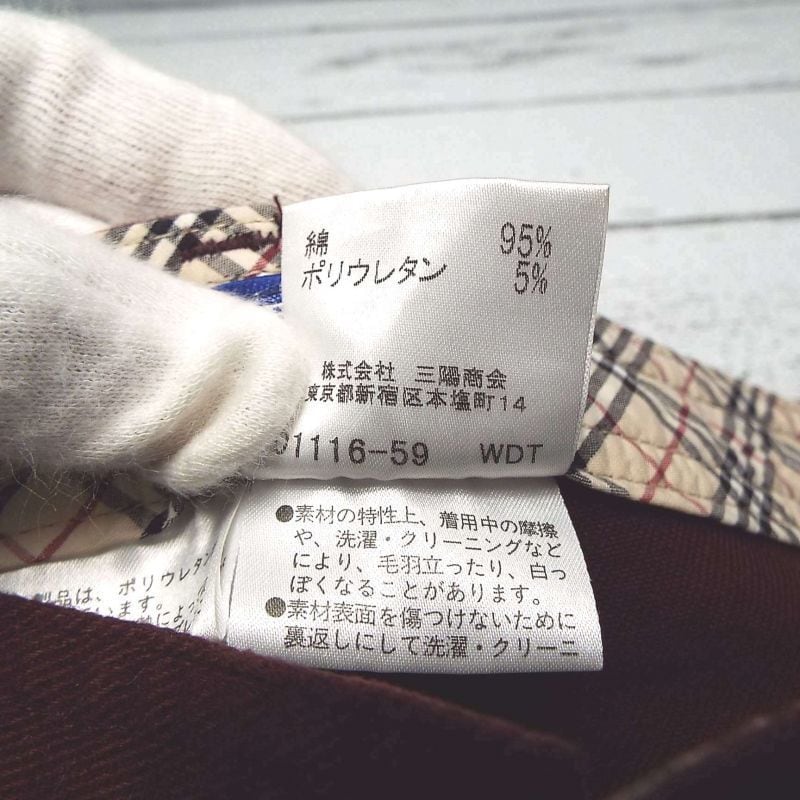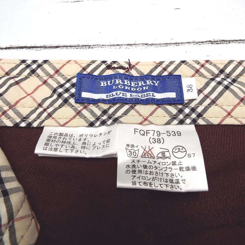 【ノバチェック柄入り】BURBERRY BLUE LABEL(バーバリー ブルーレーベル)4ポケット スリム ストレッチ パンツ(ボトムス)サイズ38(ウエスト79cm)ワインレッド コットン・ポリウレタン混紡【湘南倉庫】レディースブランド古着 三陽商会扱い