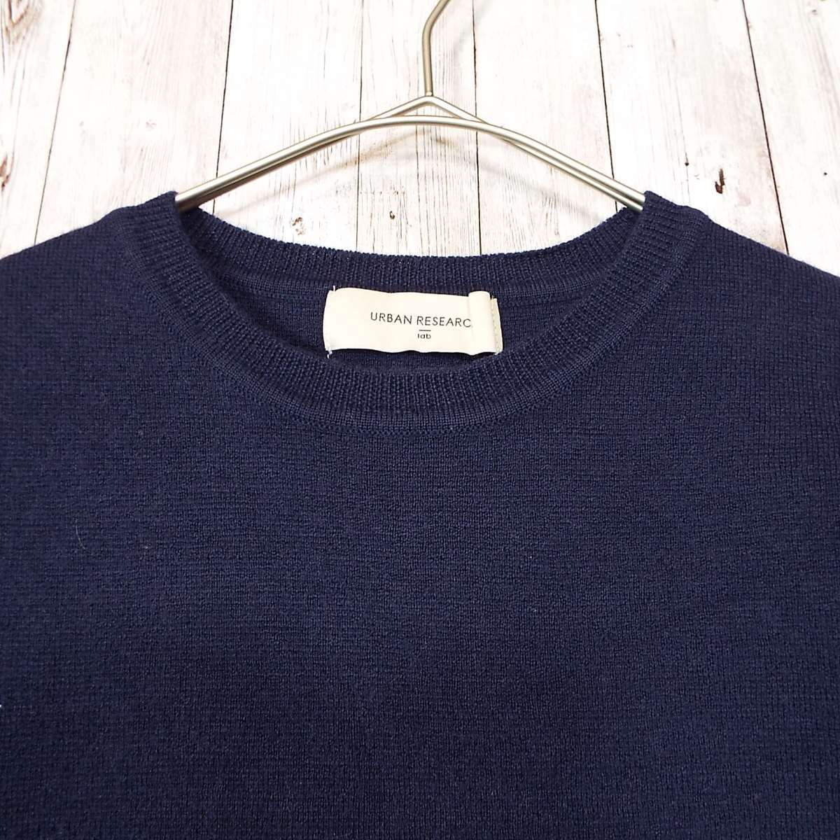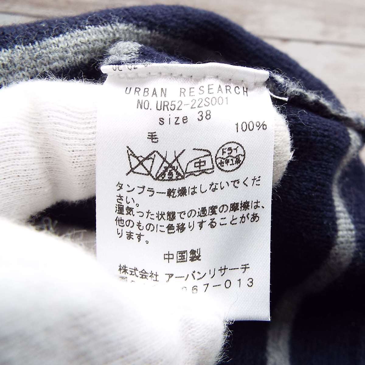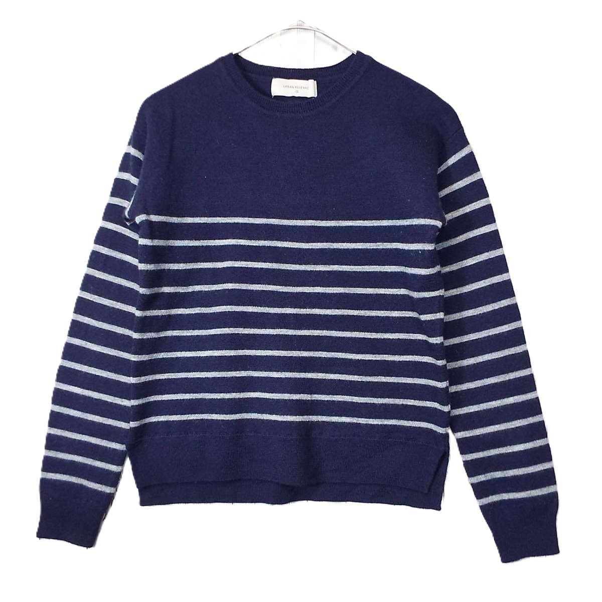 【ボーダー柄】URBAN RESEARCH lab(アーバンリサーチ ラボ) ウール100% 長袖ニットセーター サイズ38(肩幅43cm)ネイビー・ホワイト【湘南倉庫】レディースブランド古着