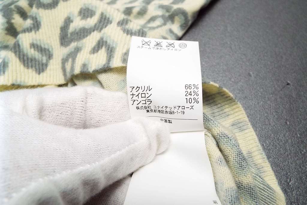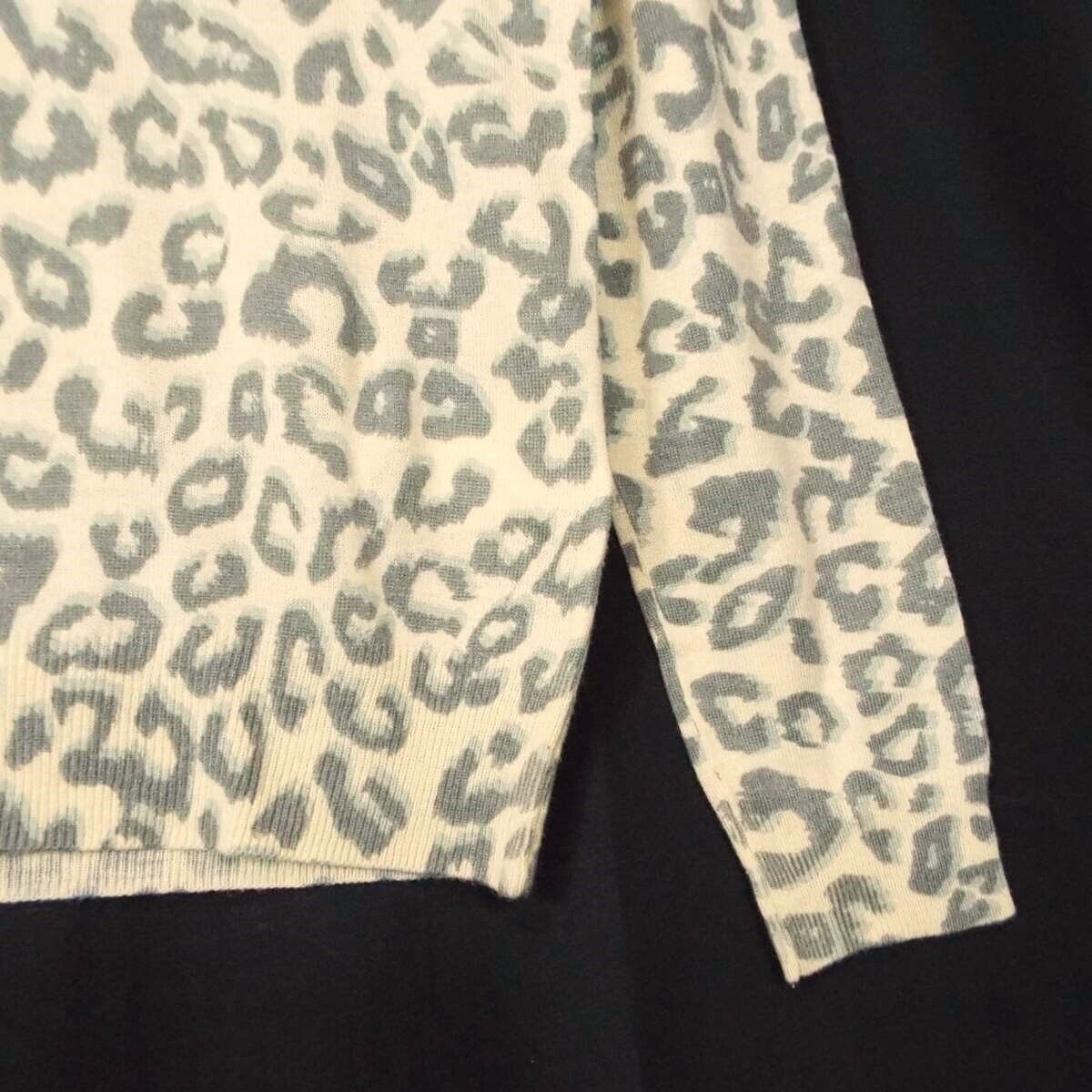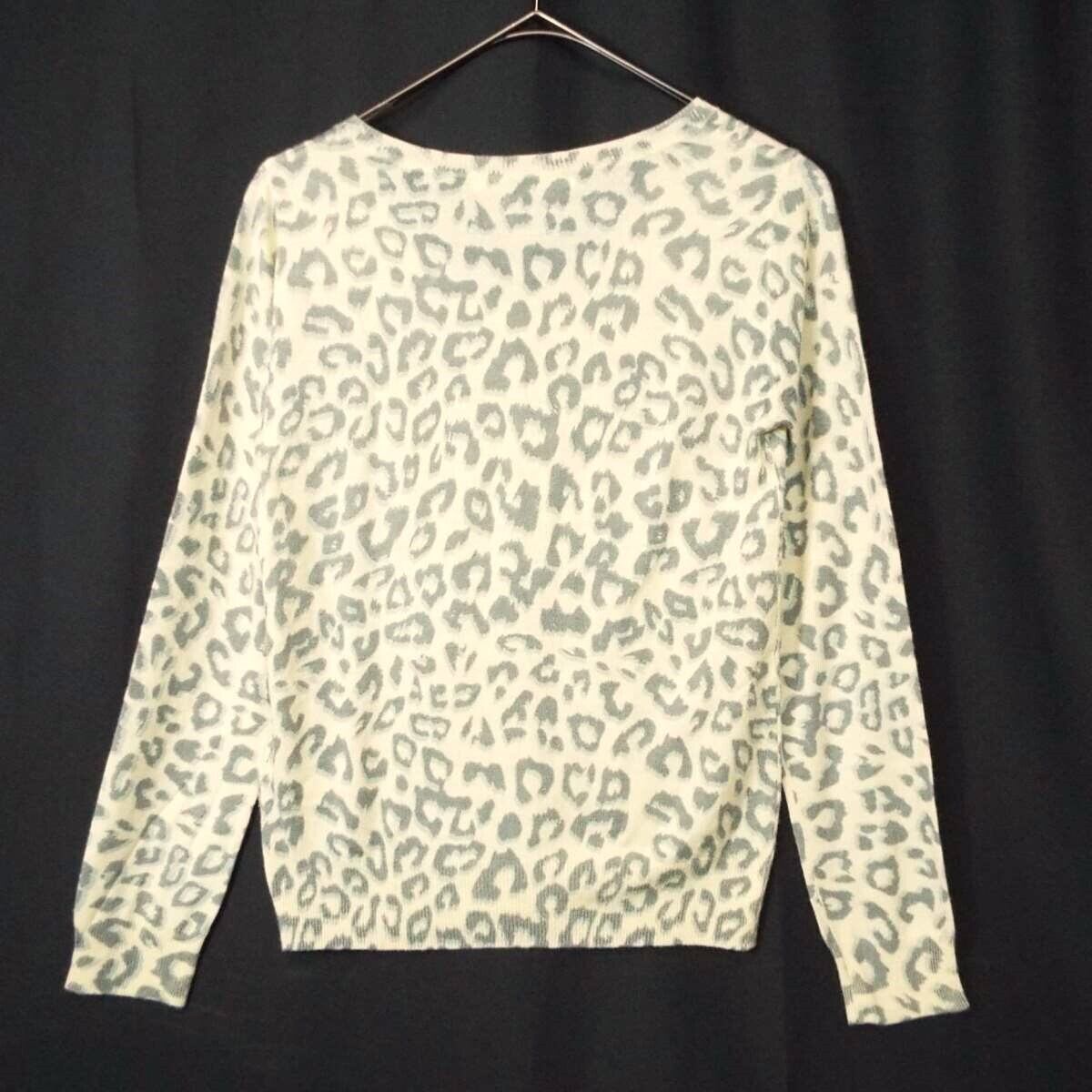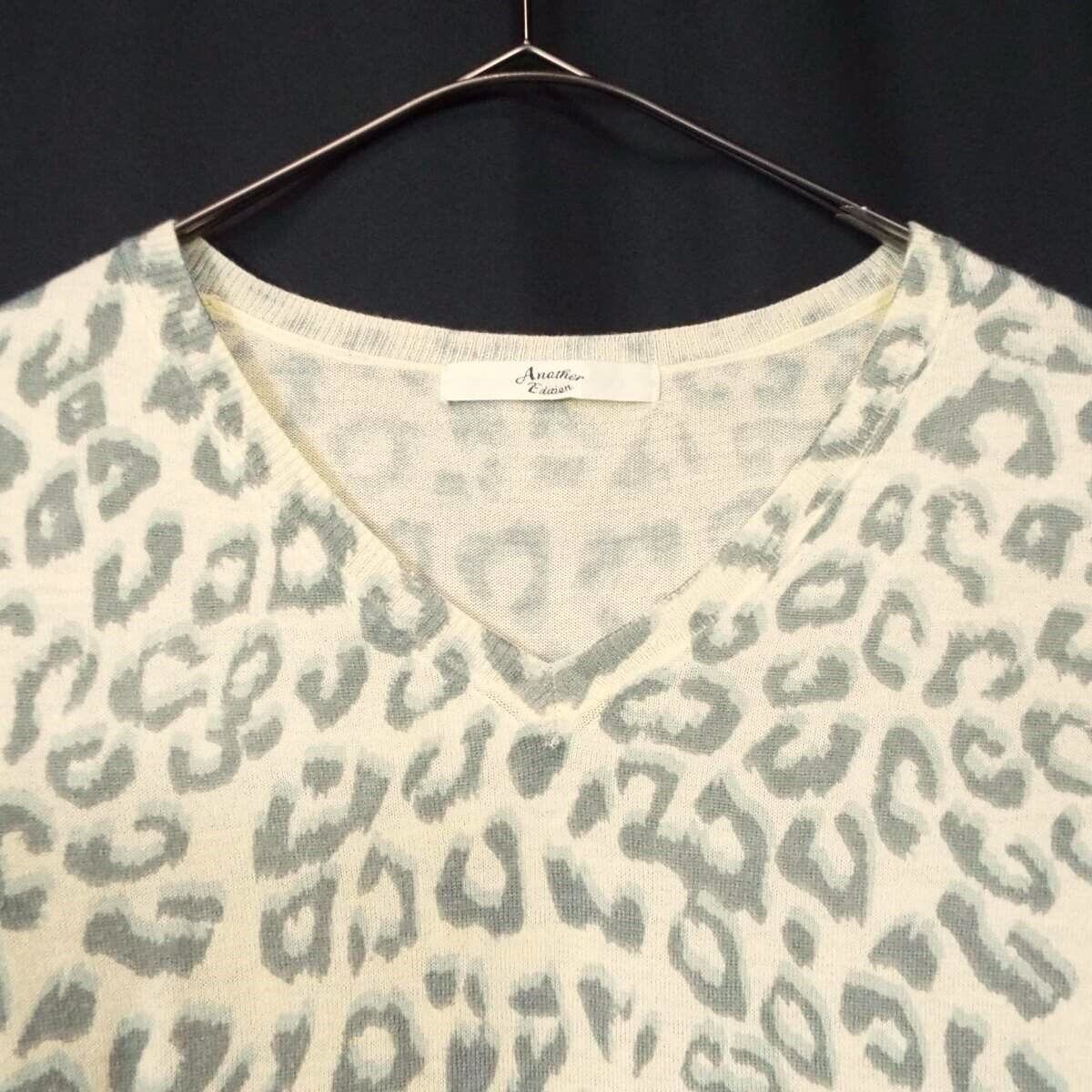 【ソフト&ワイルド】Another Edition(アナザーエディション) ヒョウ(レオパード)豹柄 長袖Vニットシャツ フリーサイズ(肩幅35.5cm)ライトイエロー(アイボリー)【湘南倉庫】レディースブランド古着