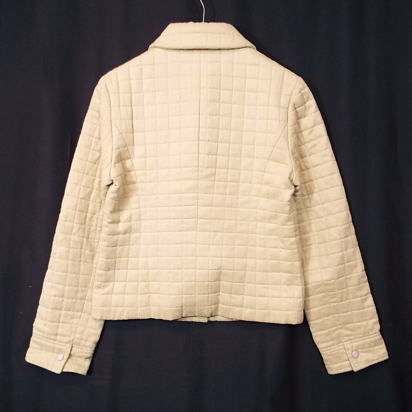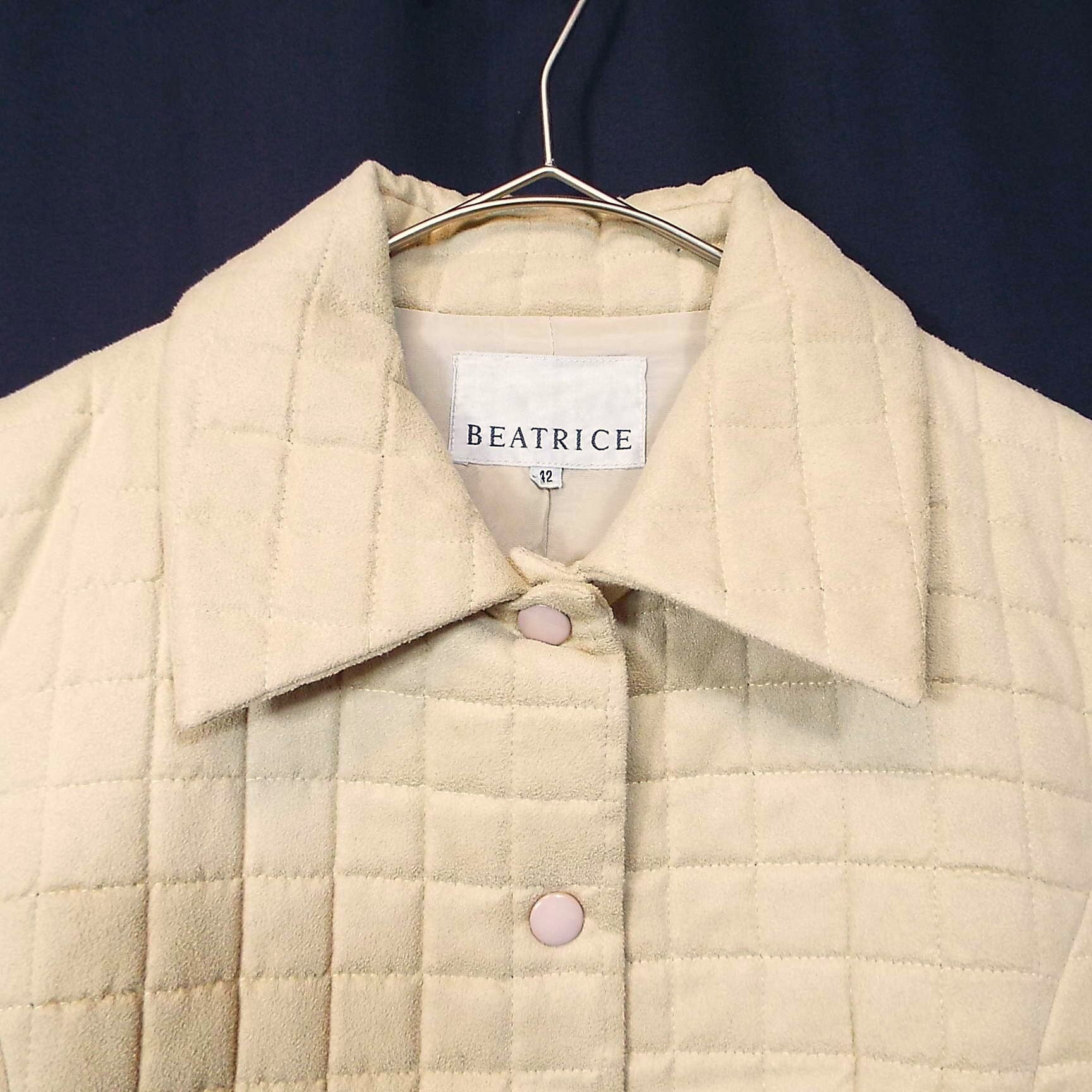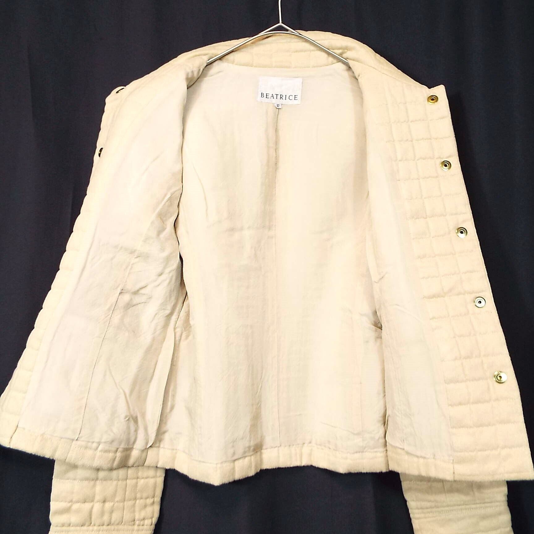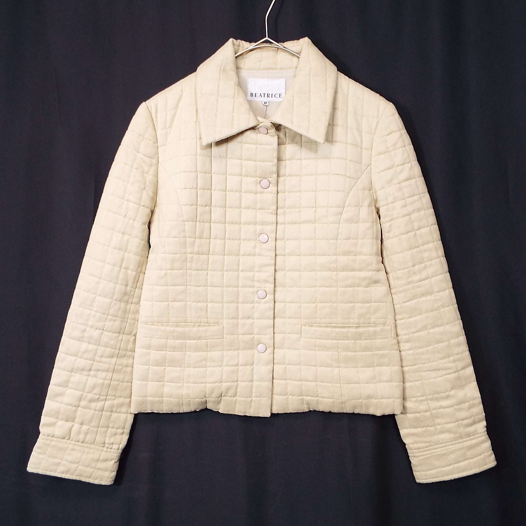 【貴重な旧タグ】00's 日本製 BEATRICE(ベアトリス) ブロックデザイン スナップボタン 長袖 ジャケット サイズ42(肩幅38.5cm)ライトベージュ【湘南倉庫】90年代風 レディースブランド古着