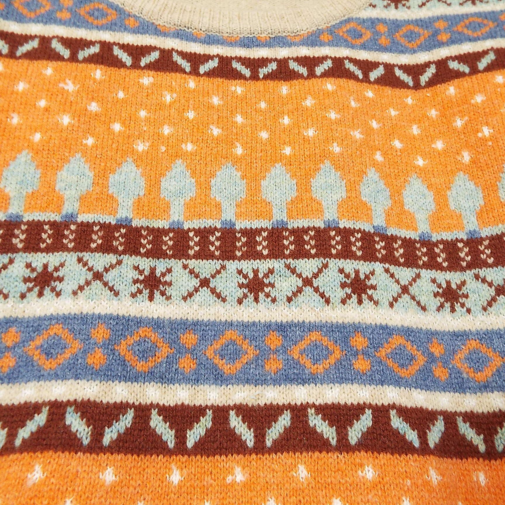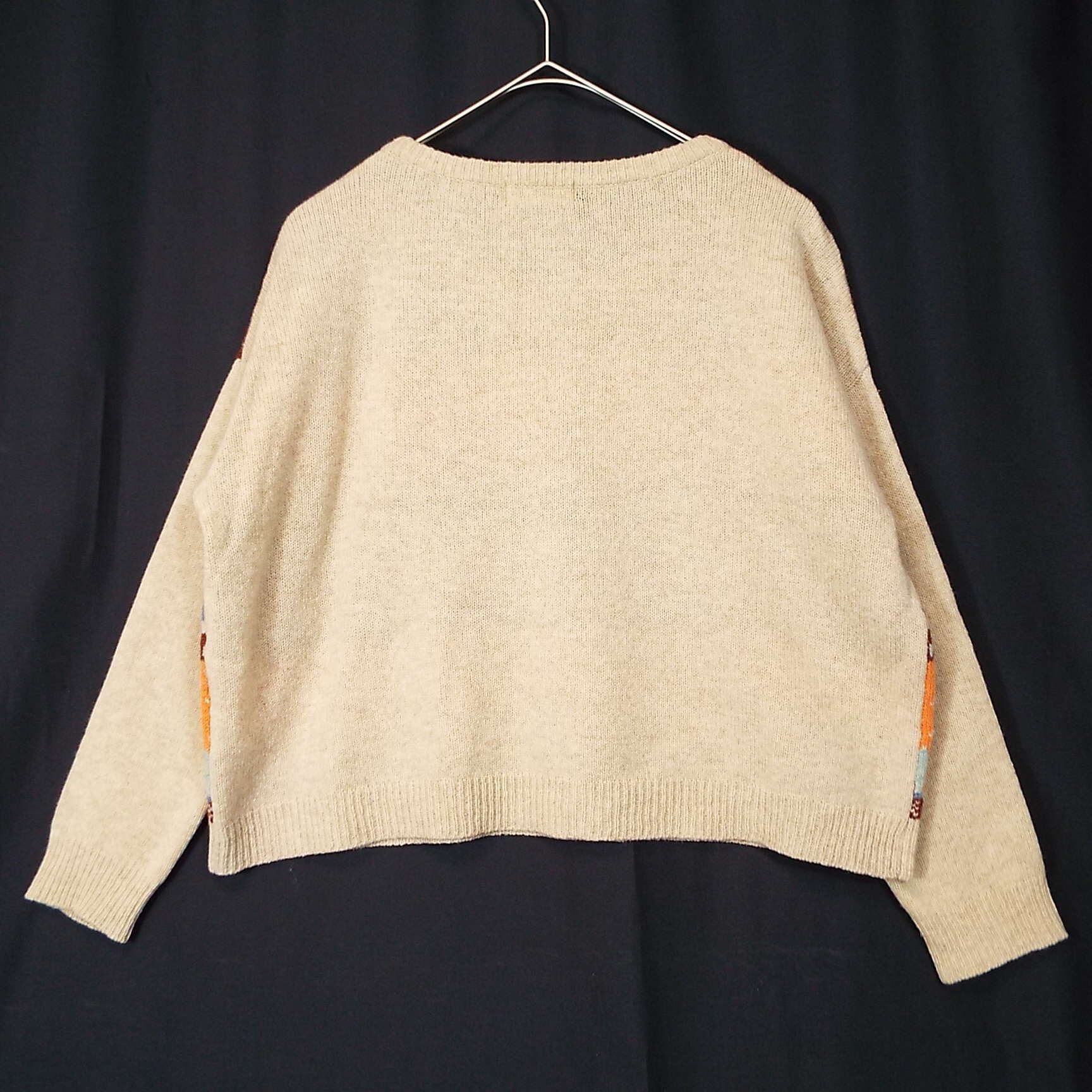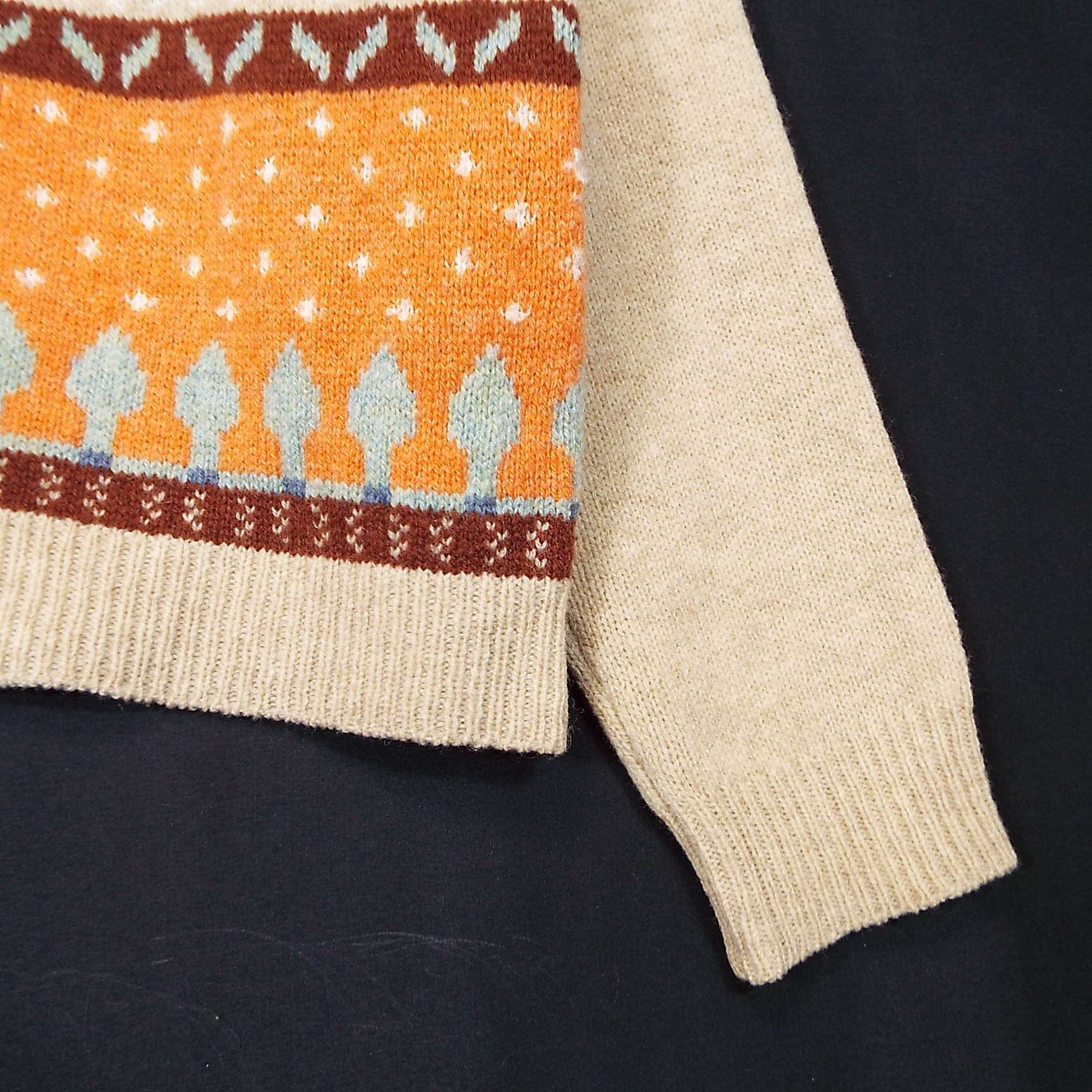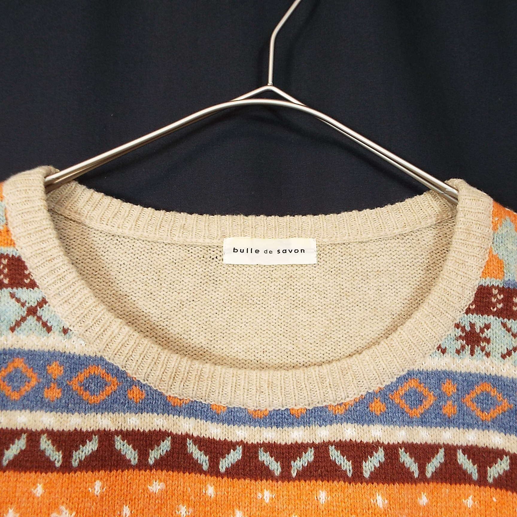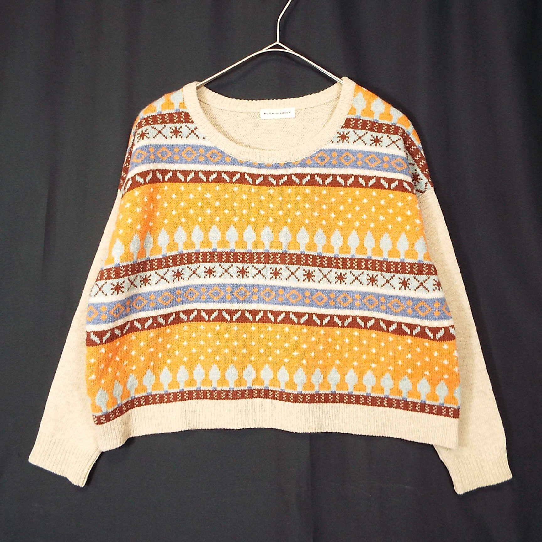 【オーバーシルエット】bulle de savon(ビュルデサボン)ノルディック柄 長袖ニットセーター フリーサイズ【肩幅57.5cm】 ベージュ・オレンジ ウール混紡【湘南倉庫】レディースブランド古着