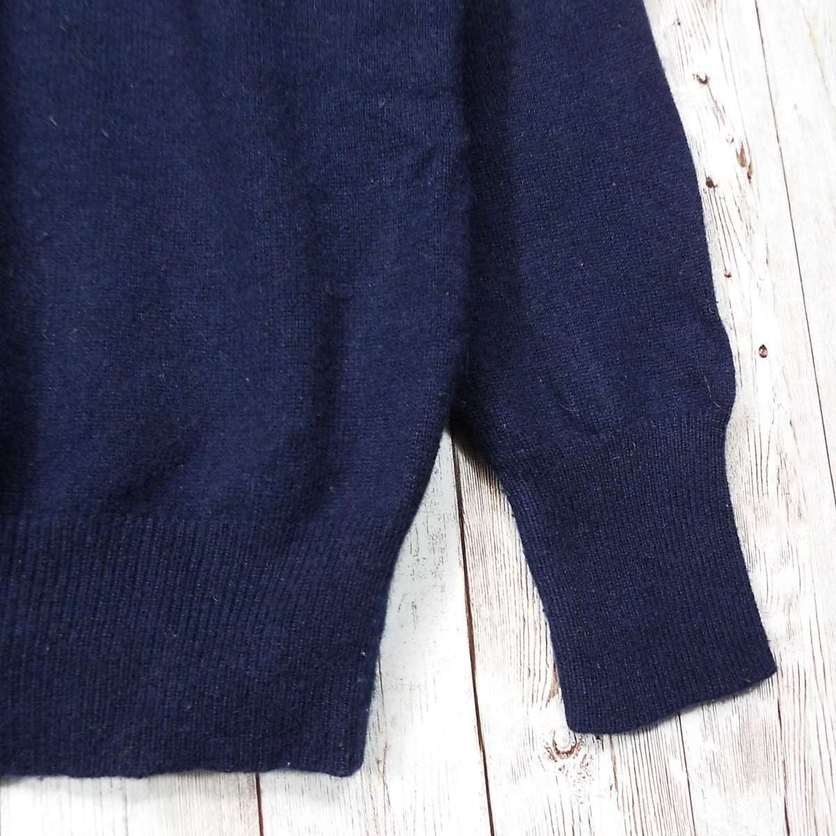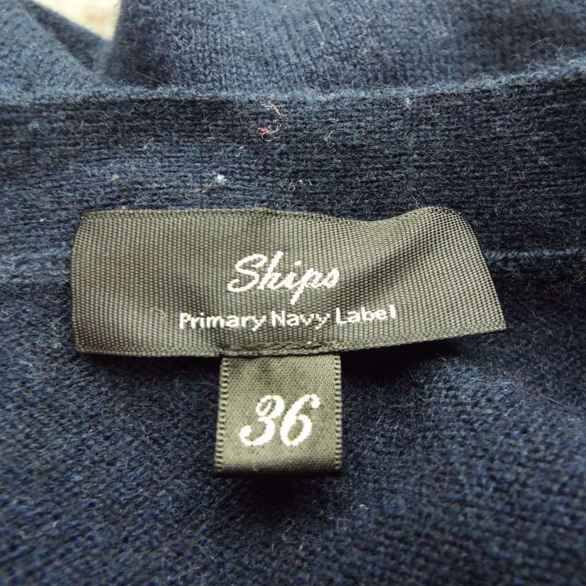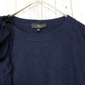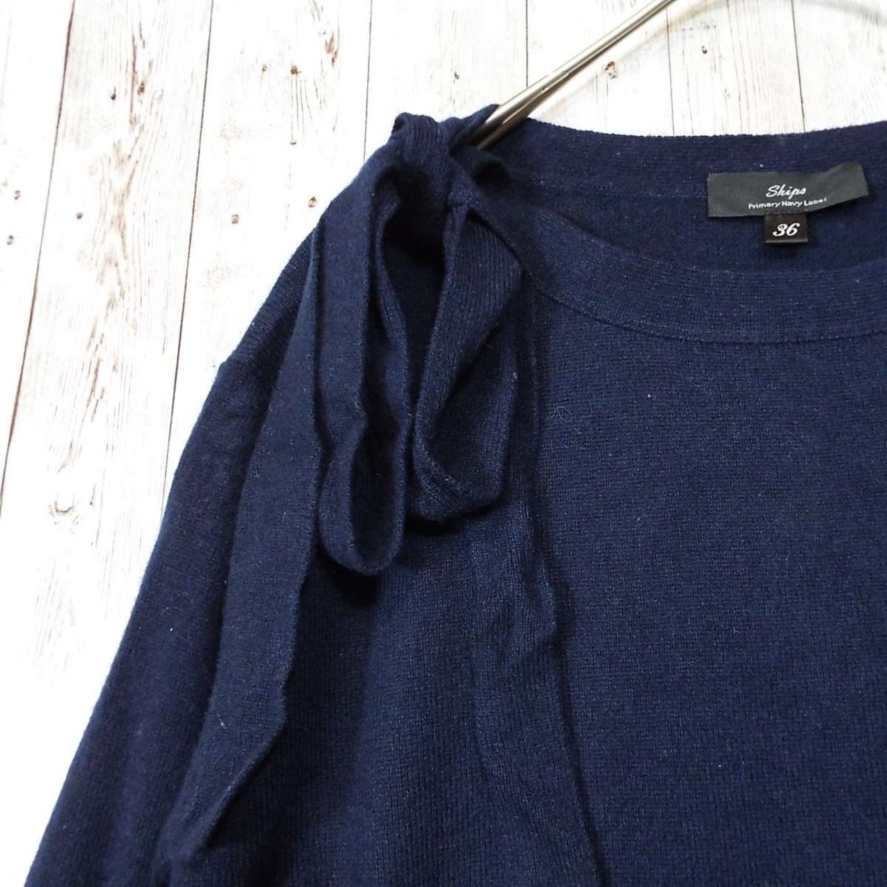 【ショルダーリボン】SHIPS シップス カシミヤ混紡 クルーネック 長袖ウールニットセーター サイズ36(肩幅39cm)ネイビーブルー【湘南倉庫】レディースブランド古着