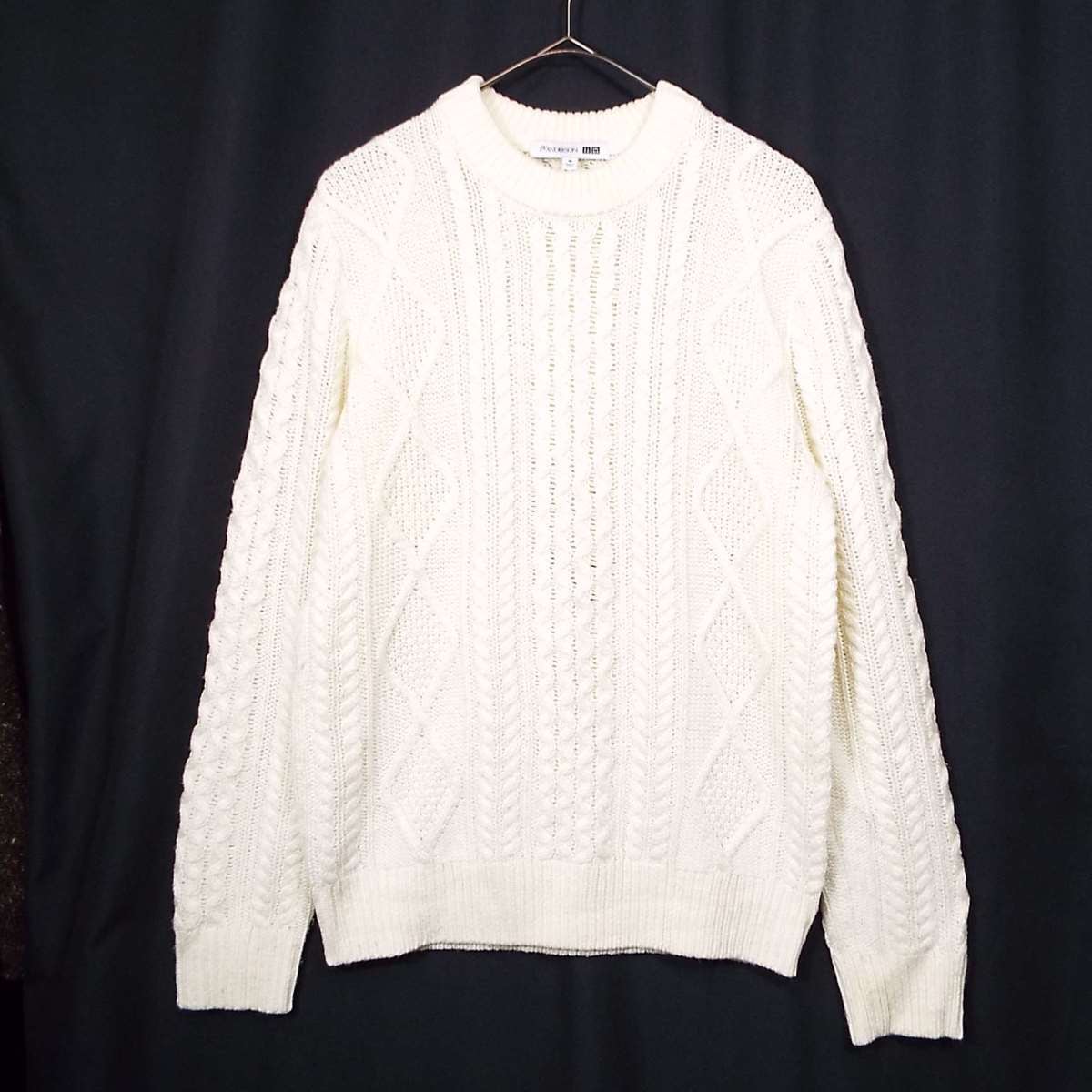 ・人気のアラン編みに、落ち着いたオフホワイト(アイボリー)の素敵な1着です。