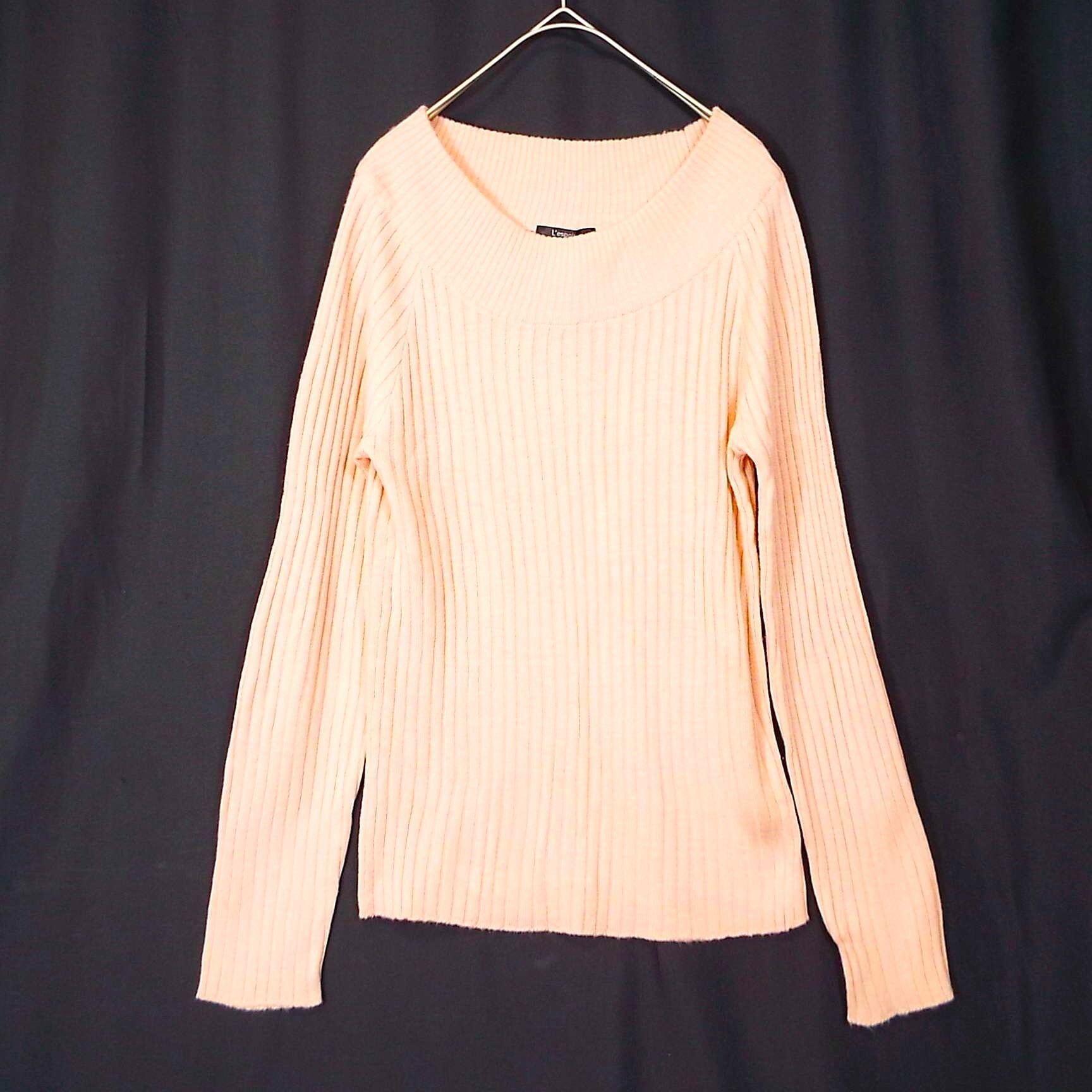 【肩見せニットシャツ】L'espoir(レスポワール)オフショルダー 長袖ニットシャツ Lサイズ(バスト:86-94cm・身長:154-162cm)ライトピンク アクリル【湘南倉庫】レディース古着